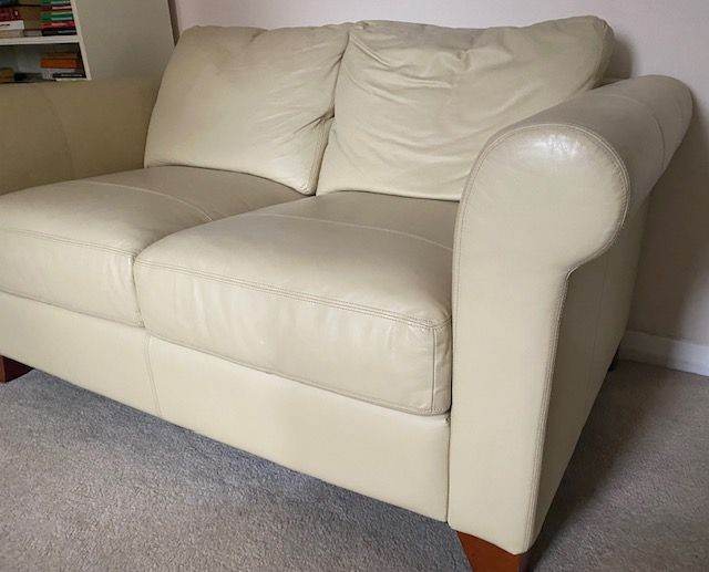 Two identical 2-seater leather sofas for sale - 1 x brown and 1 x cream