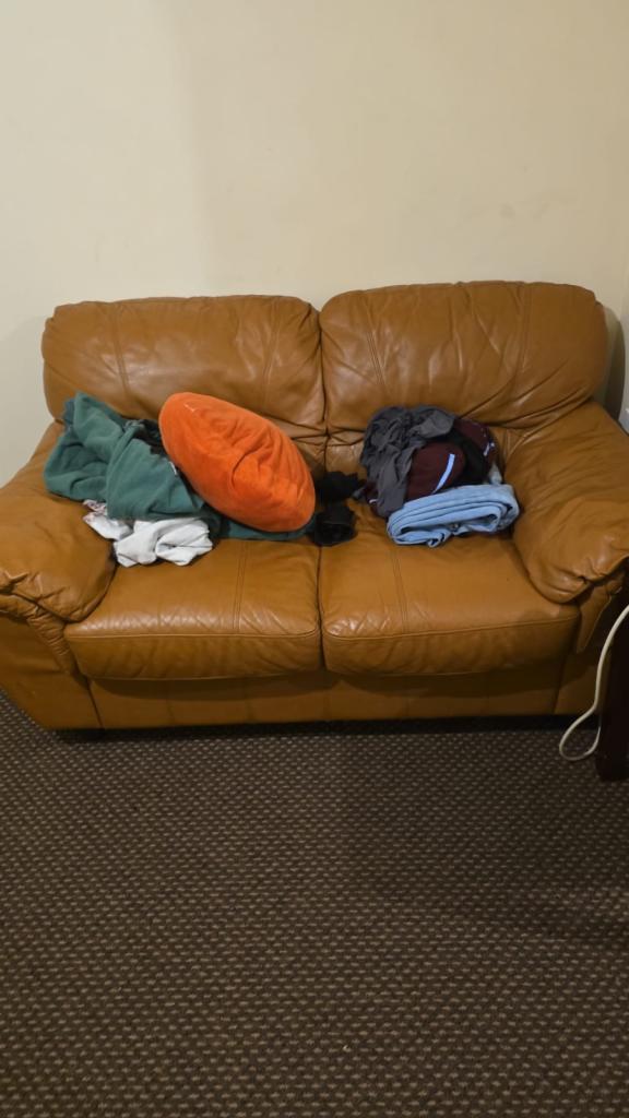 Two x 2-seater leather sofas for sale.