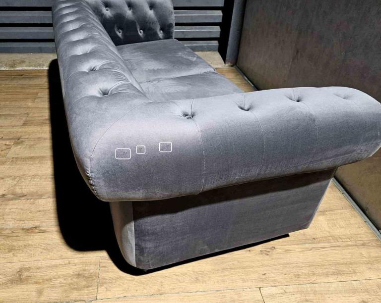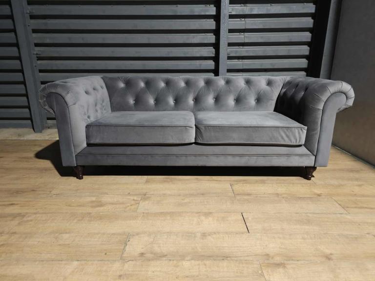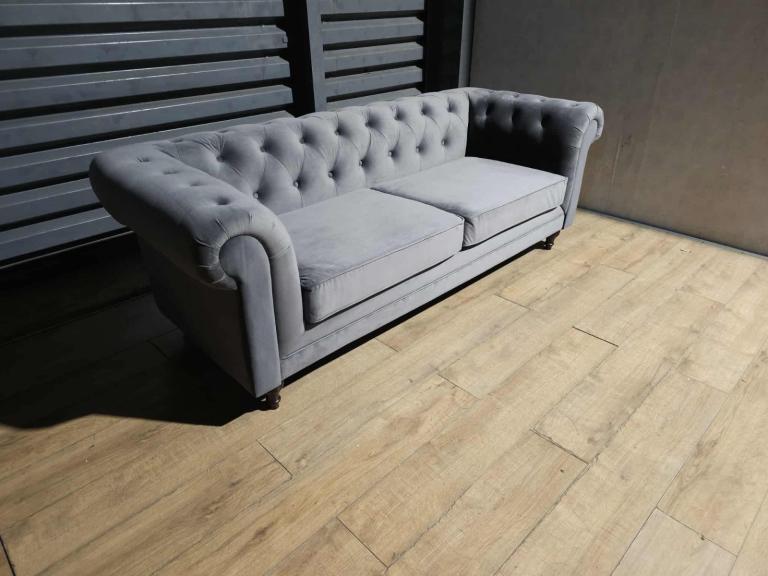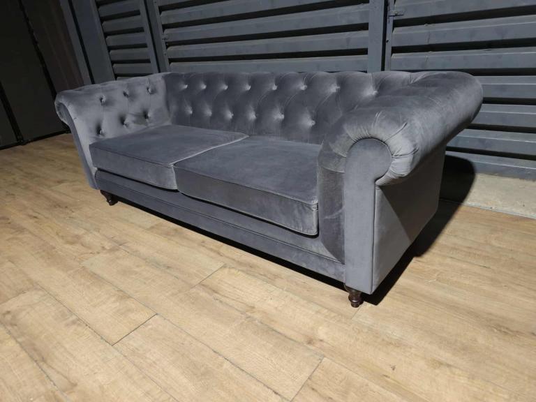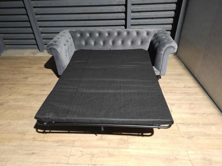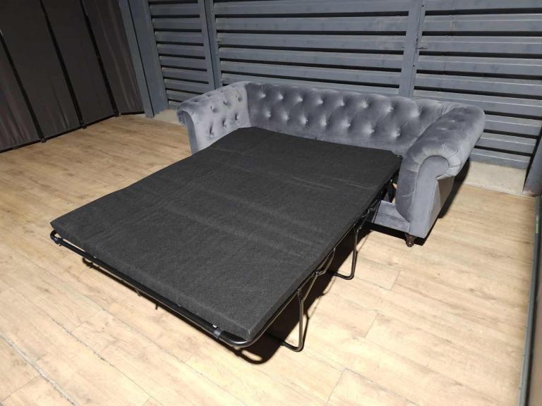 Unused Velvet Chesterfield 3 Seater Sofa Bed- Charcoal.