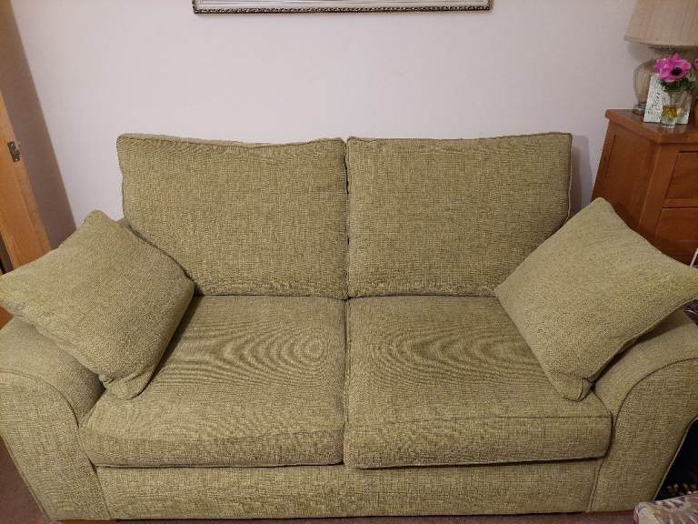 Used dark brown leather two-seater sofa. Markings on the actual seats due to wear and tear and white markings along the back of sofa due to it being leant up against a radiator. However, Still in good condition and could be dressed up with cushions, blankets/throws. Collection only.