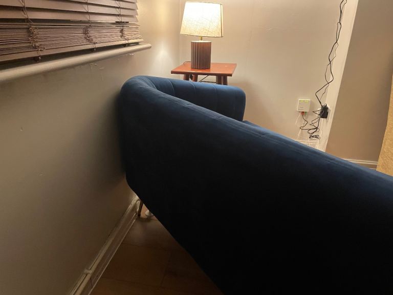 Posting for 13+ yearsVelvet two seater sofa in Blue