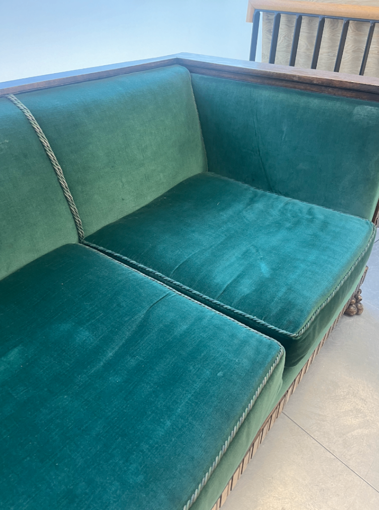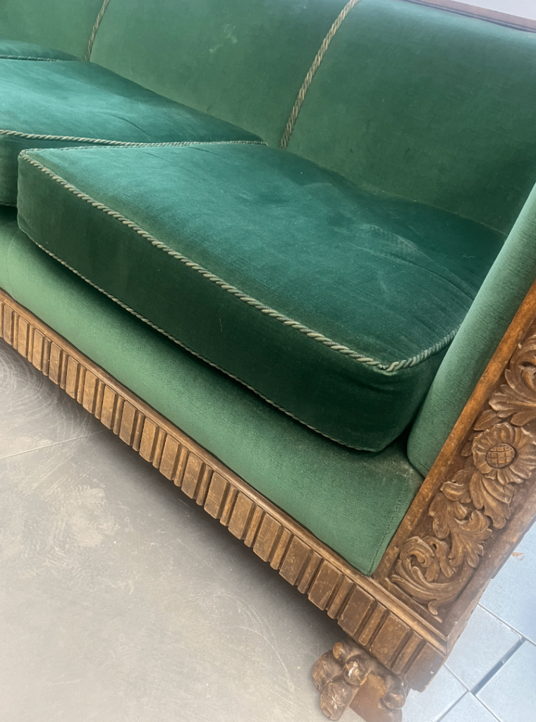 Posting for under a monthVINTAGE ANTIQUE WOODEN FRAME VELVET SOFA