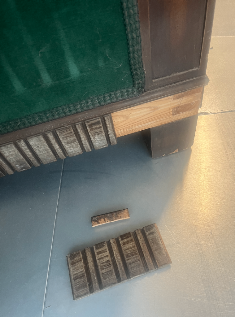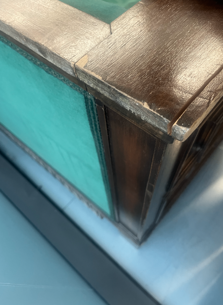 Due to the age, there is some damage to the wood on multiple area. Please see all photos and please reach out if you have any questions