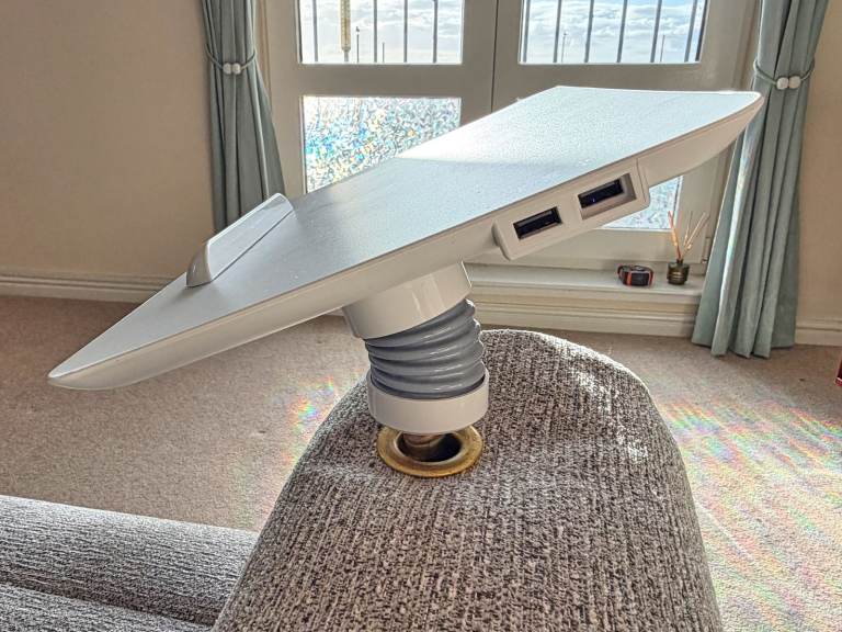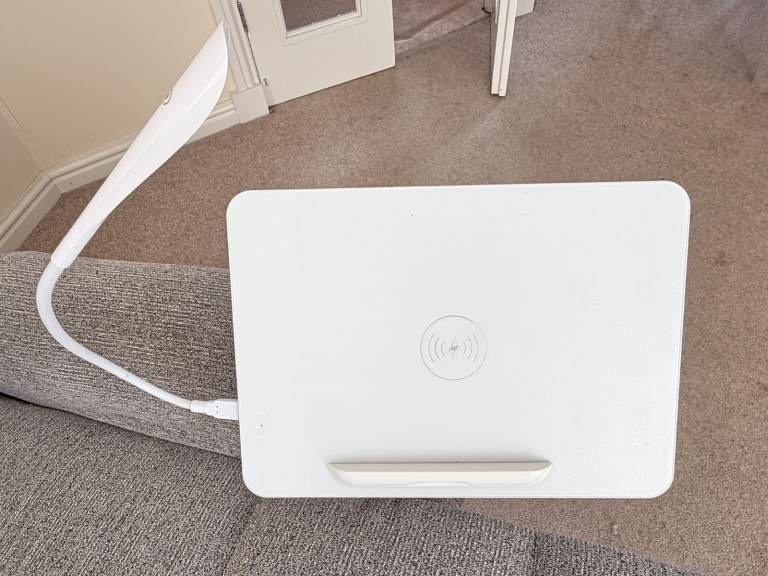 Includes two swivel ipad/phone/book rests with wireless charging capability - With two USB ports and a flexi reading light.