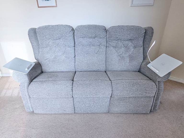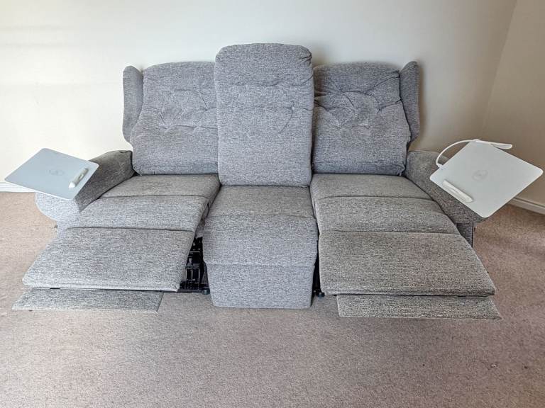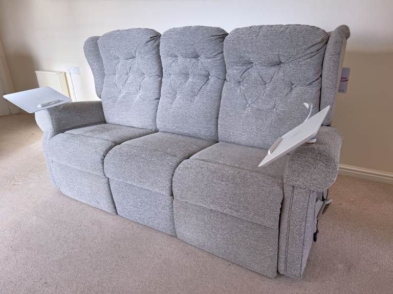 For sale is a stunning Willowbrook Electric Riser Recliner three-seater sofa in light grey chenille fabric. Only 2 years old and in excellent condition with no stains, rips or significant wear.