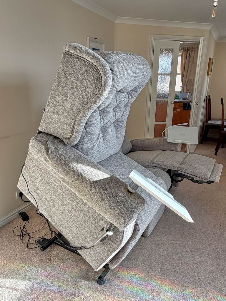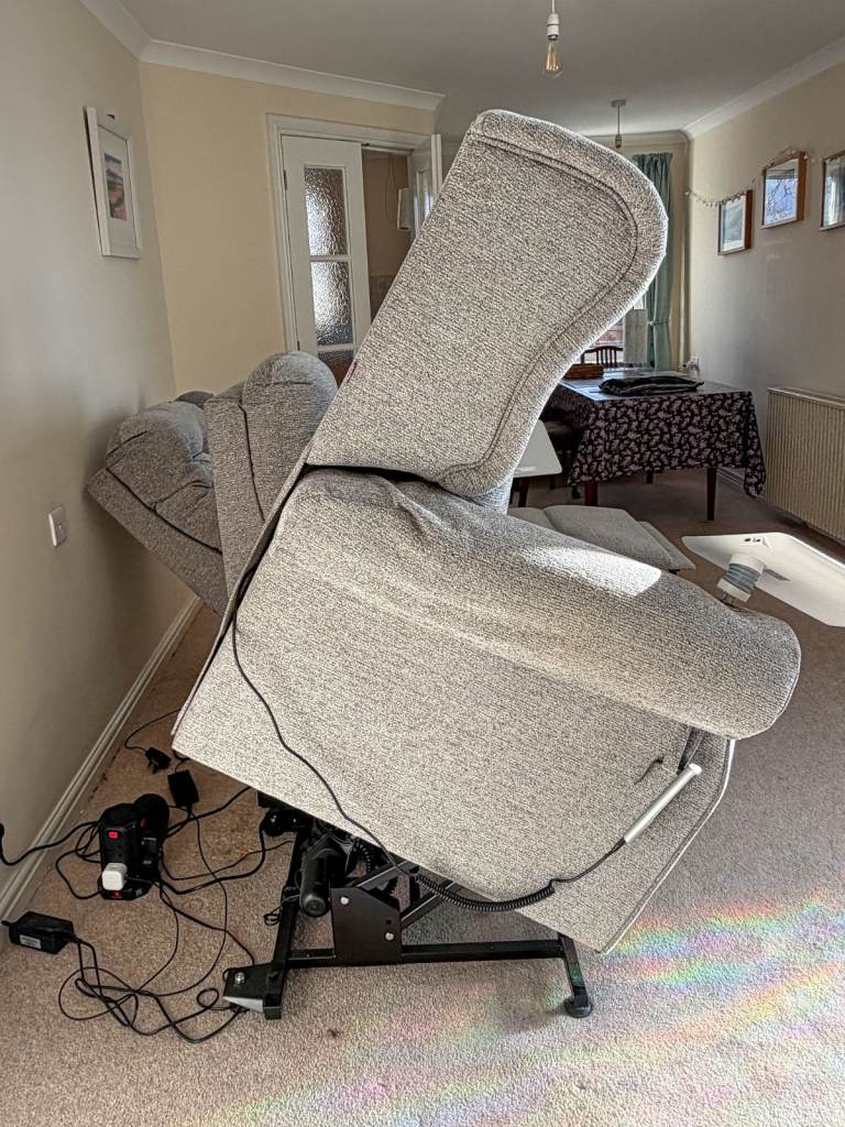 Originally purchased for £7,000, this is a premium UK-made mobility sofa offering full electric rise and recline functionality — perfect for anyone needing extra support getting up and down, or simply wanting exceptional comfort.