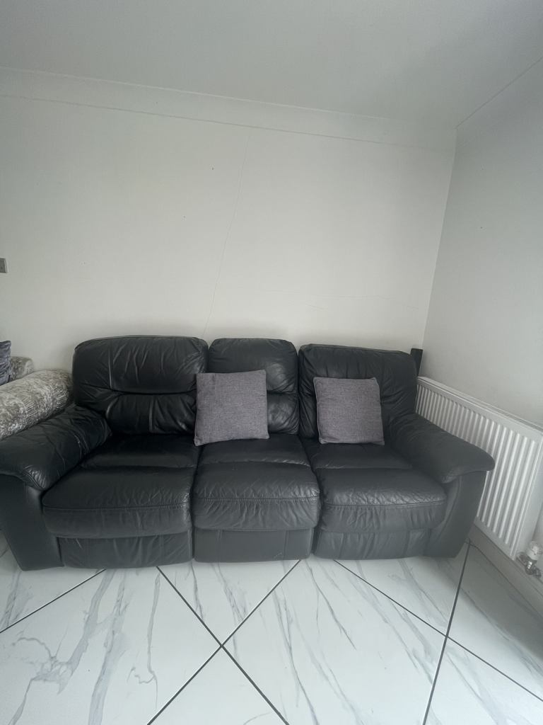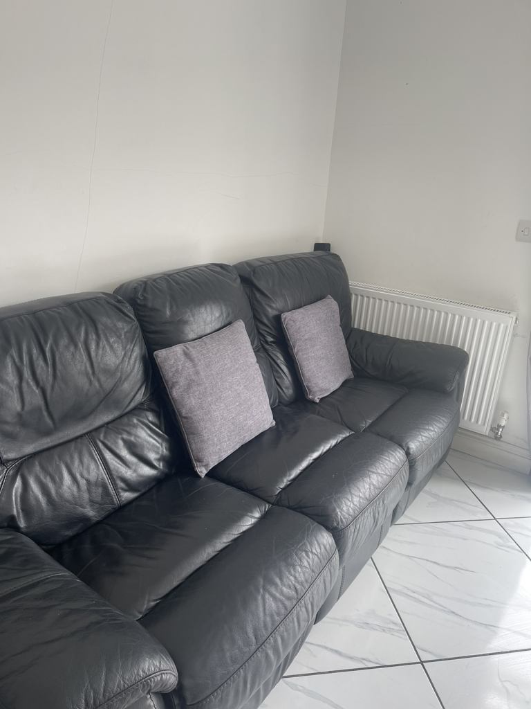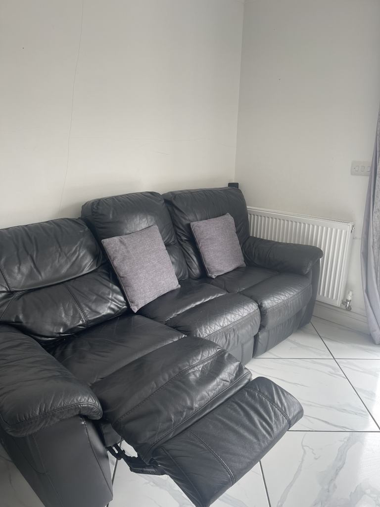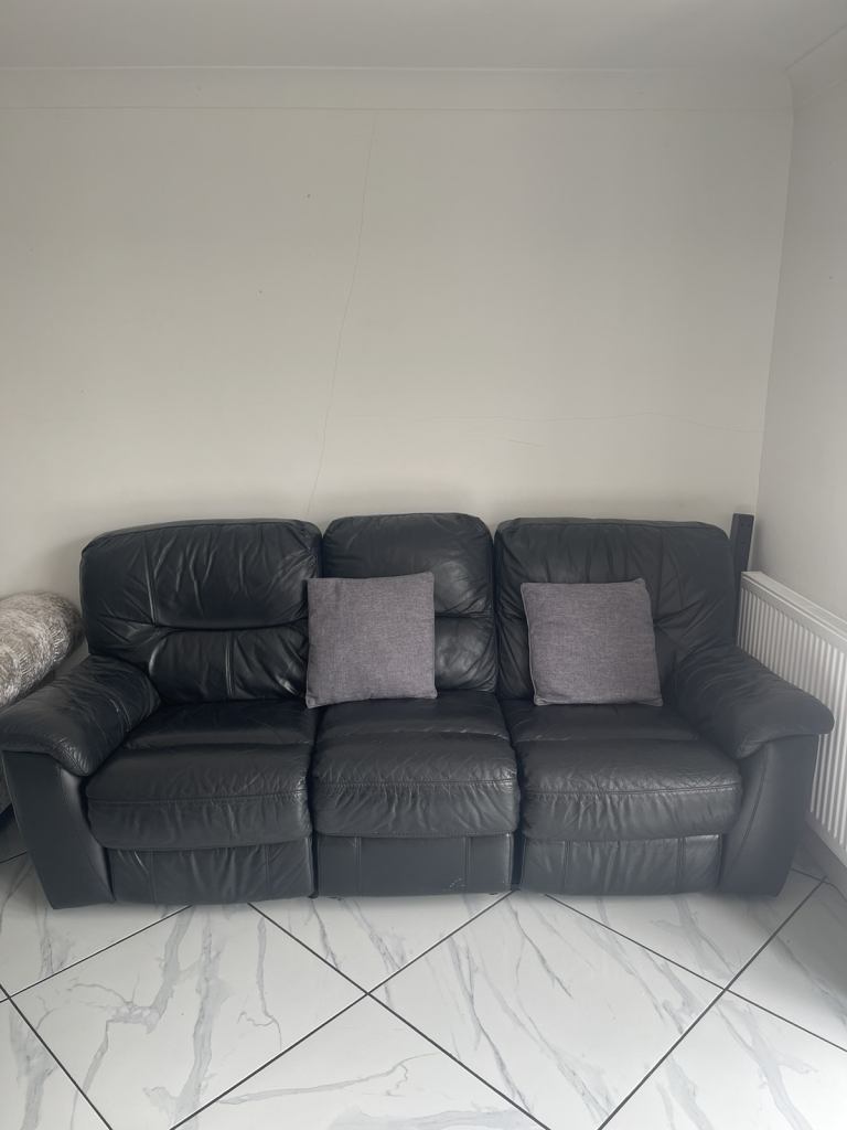 Two leather black electric reclining sofas, great condition. Both 3 seaters but plenty of room for more! Easy to clean. USB charging dock installed in sofa. £89 each