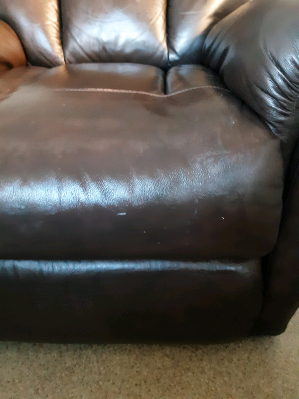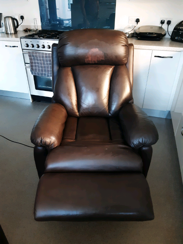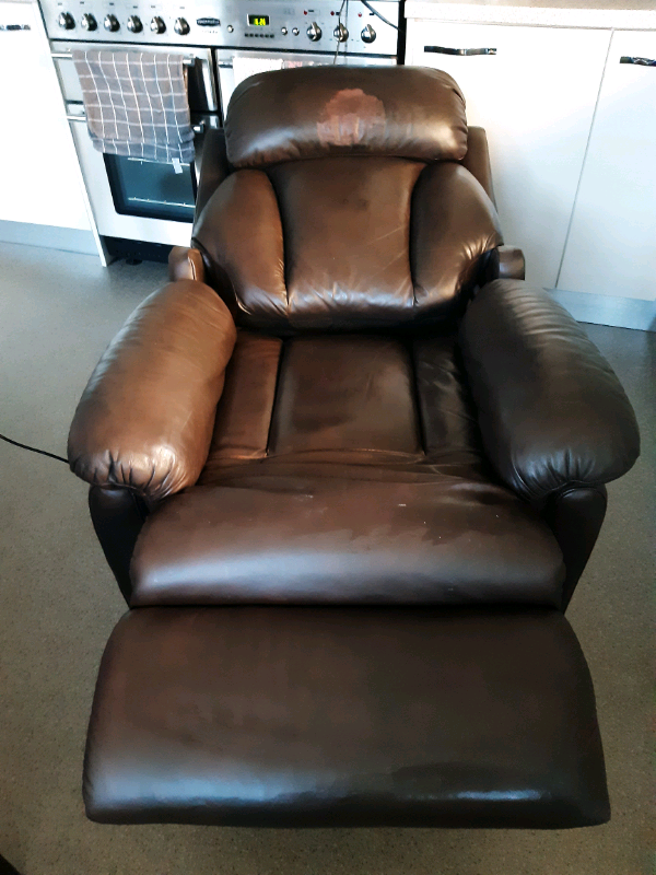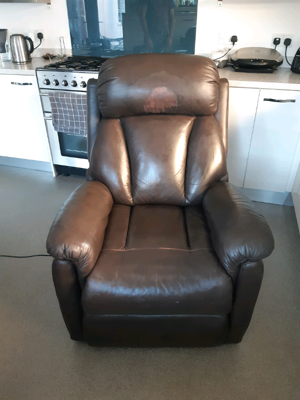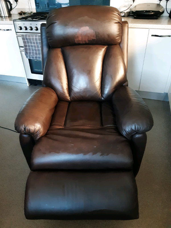 Dark brown leather Lazy Boy, in full working order. 5 years old, never used in reclining position. Remote operated. Selling as no longer required. Will require 2 people to uplift as heavy. Instructions included. Headrest area can be treated with leather care. Open to offers