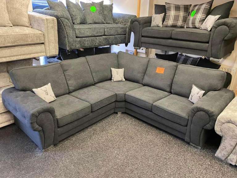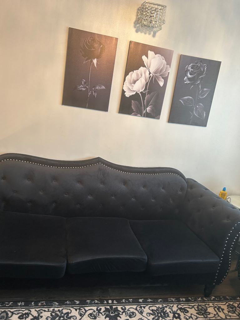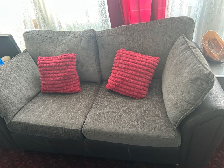 Large four seater half leather sofa, chair and foot rest with storage. Excellent condition and hardly used, selling due to house move.