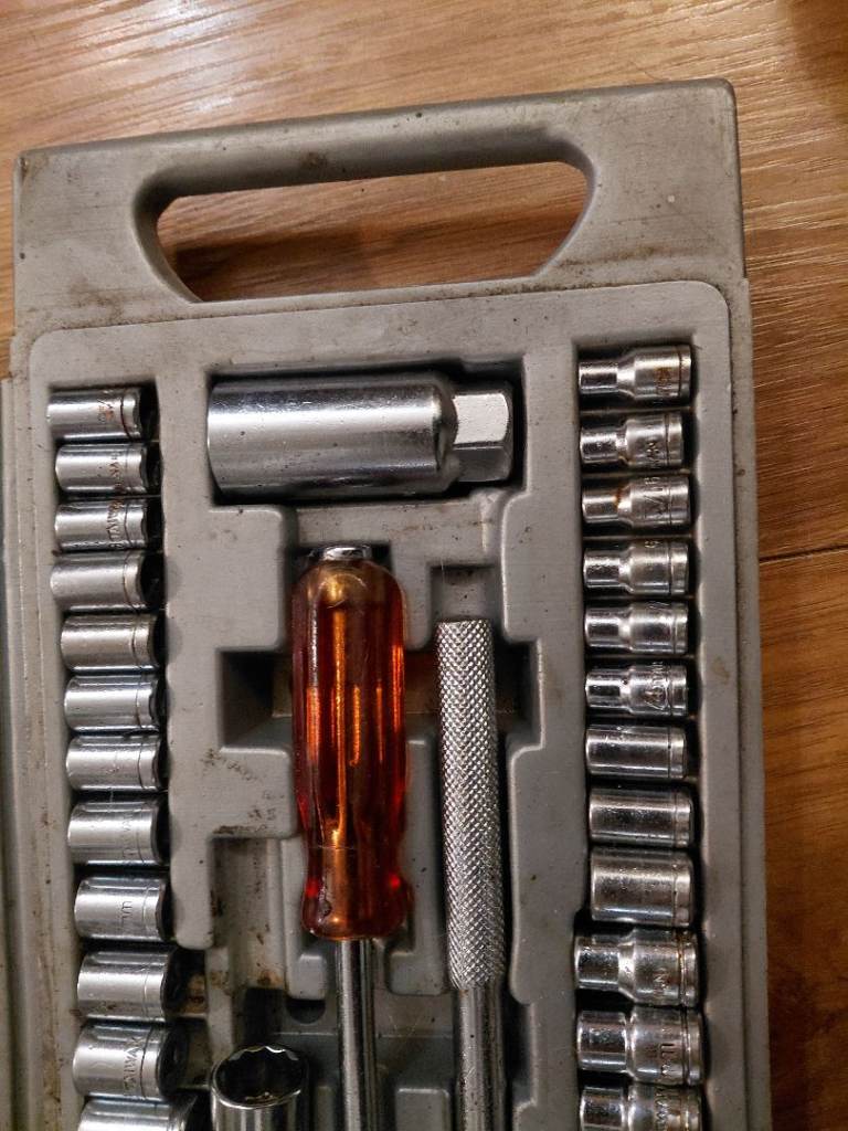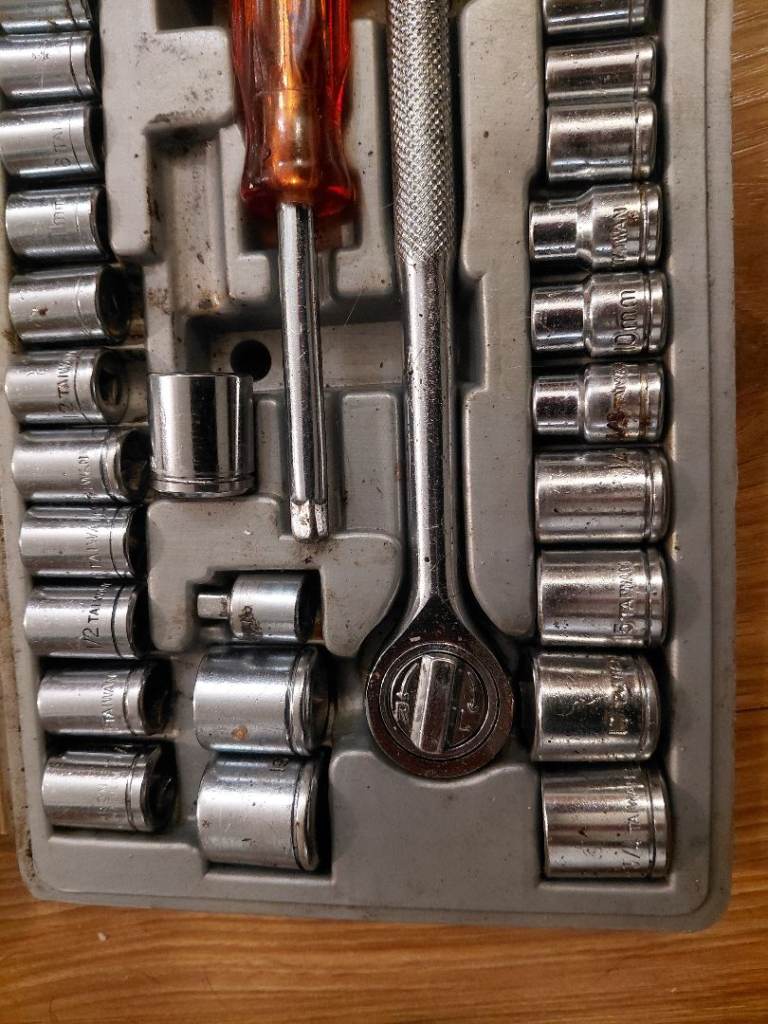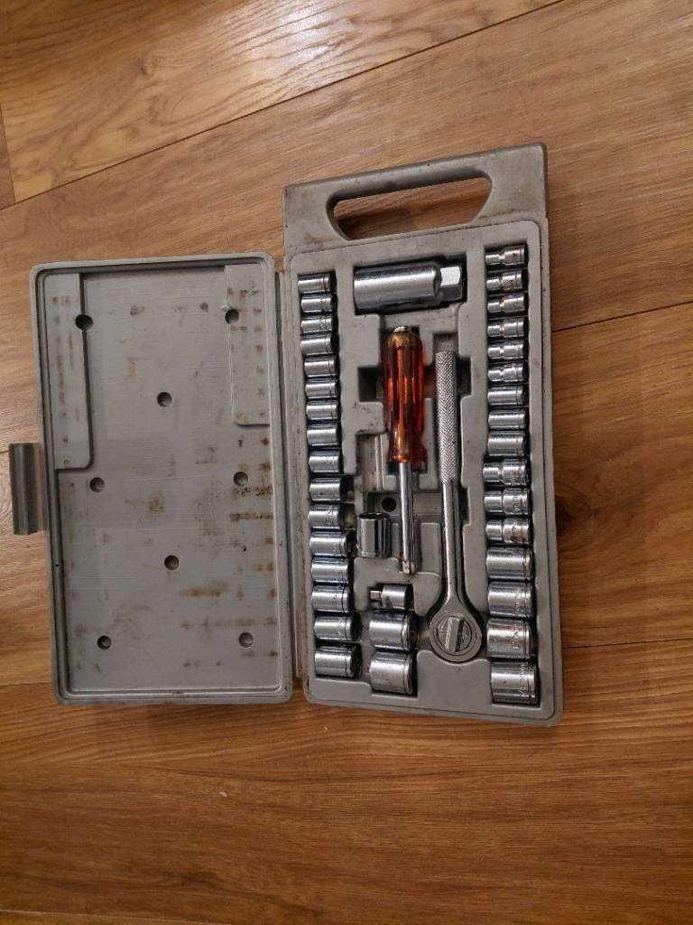 Socket set comprising of 4.5 upto 3/4 and 32 upto 19 mm with ratchet screwdriver spanner plug spanner. This is the last set of this size. This set is ideal for workshop doing small jobs. I'm not sure what is in the set just opened the harding plastic case.
