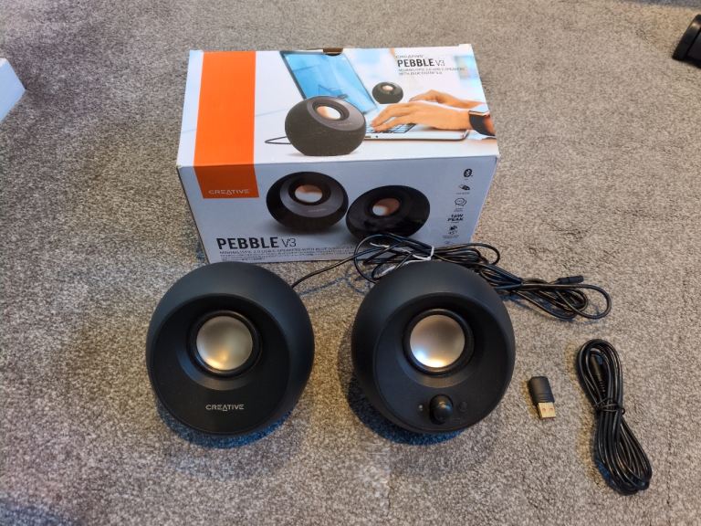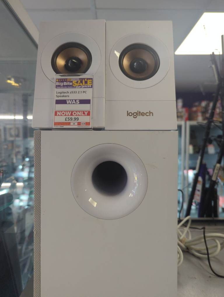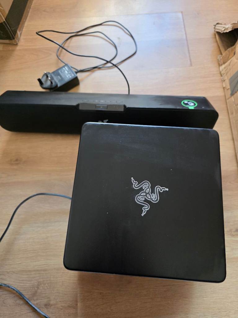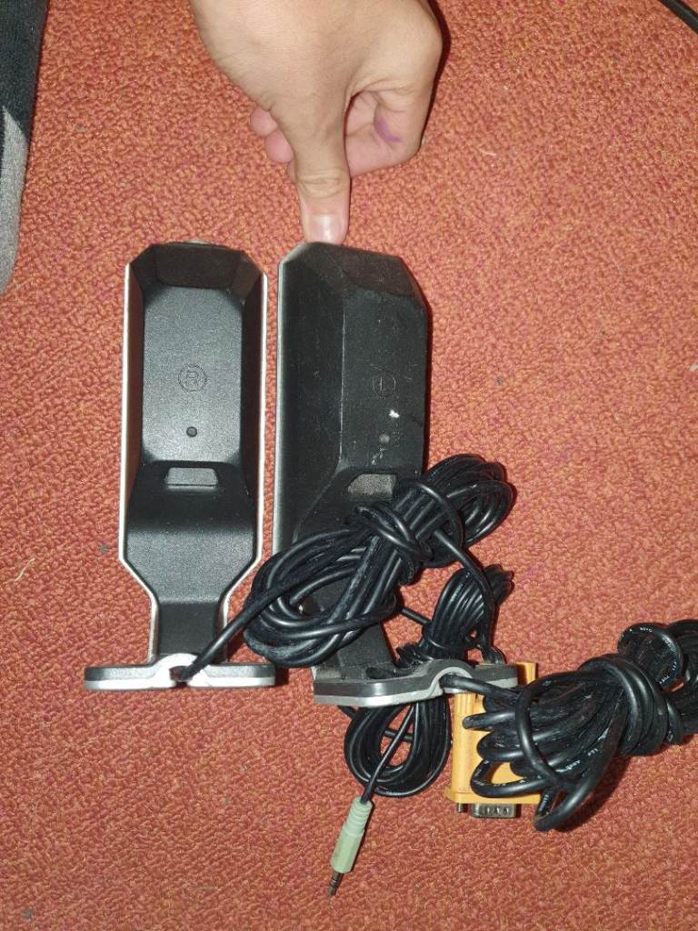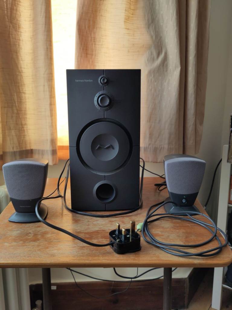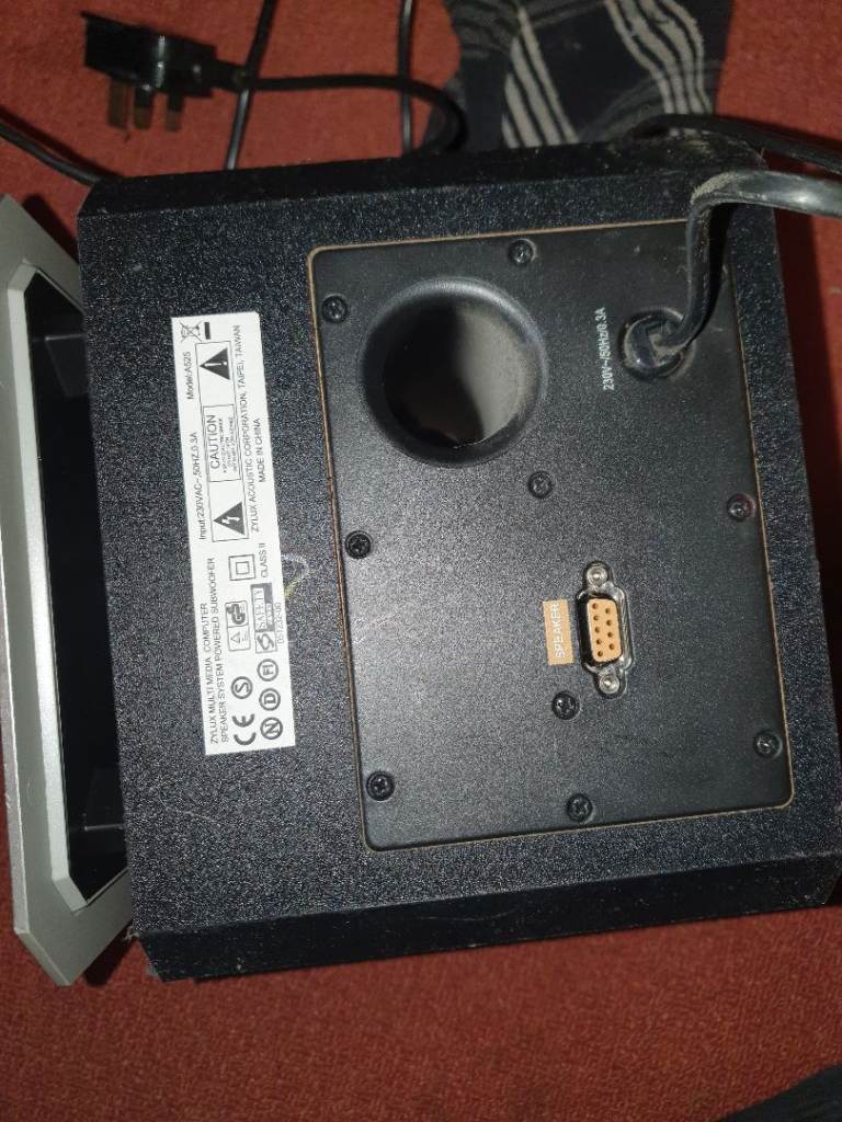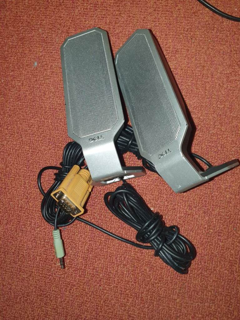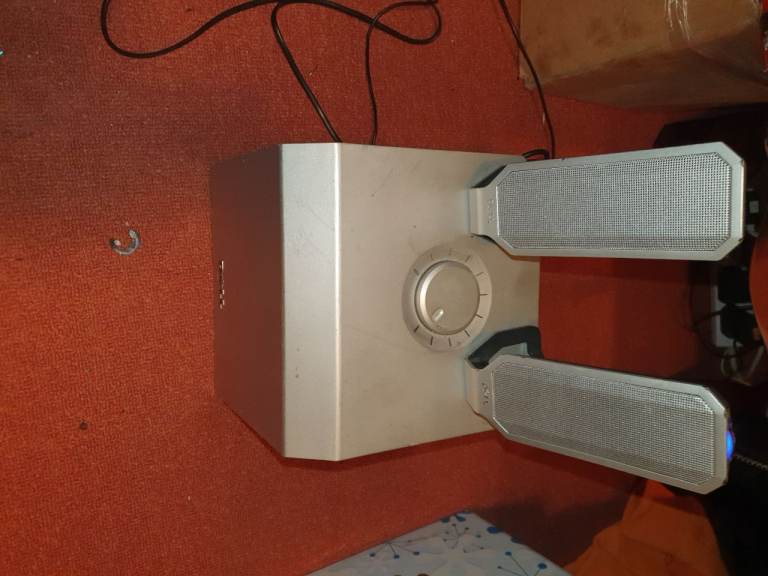 This all includes the speakers, a subwoofer, the leads from the speakers all in 1 VGA type plug and also with the Audio Stereo type of AUX Plug to transfer the sound. There is a little problem with this and it is that this that it's a bit scratches on the front mostly and the vga plug is a bit loose but other than that, it all is working perfectly. There is no delivery or bank transfer, Cash and collection only.
