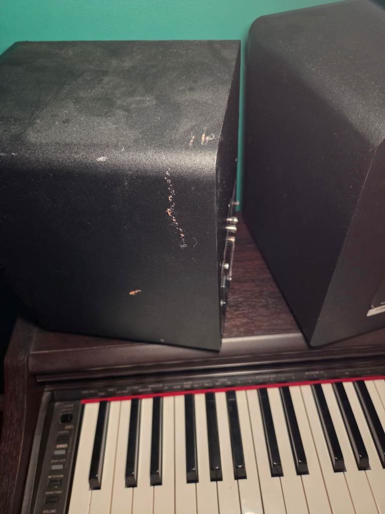 One of the monitors has a little wear on side,not noticeable once on the desk.
