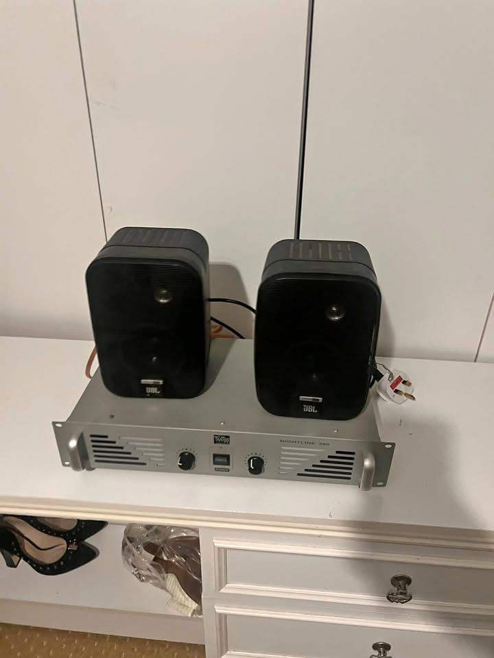 JBL Super high Quality speakers with a pro rack amp. Just clearing house , nothing wrong with them. Could do with a good wipe down