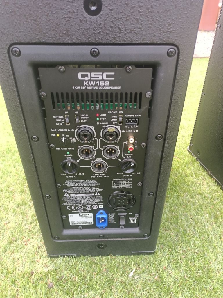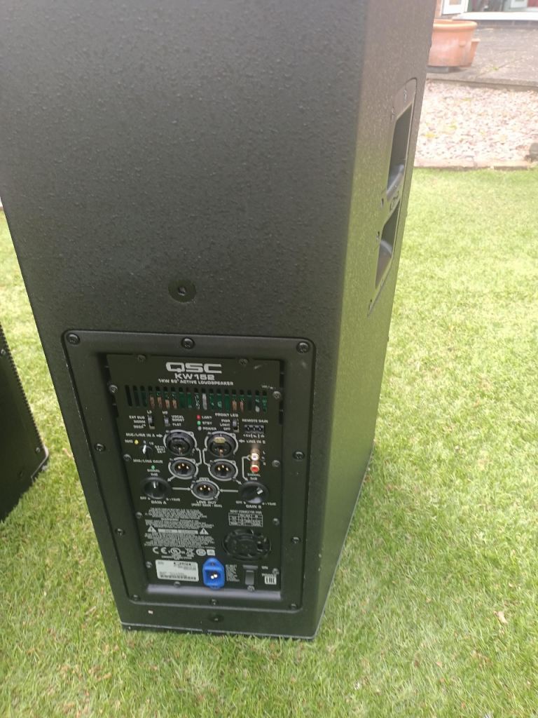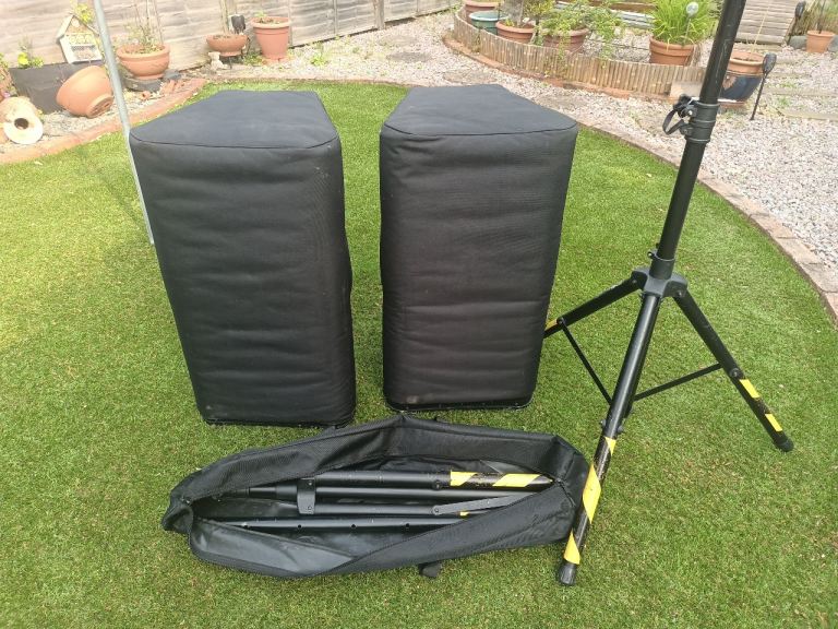 QSC 152W speakers, amazing sound, only selling as I’m emigrating, I’m including cover, stands, cables, collection only, Fantastic condition, a few scuff to the bottoms as you’d expect, collection only.