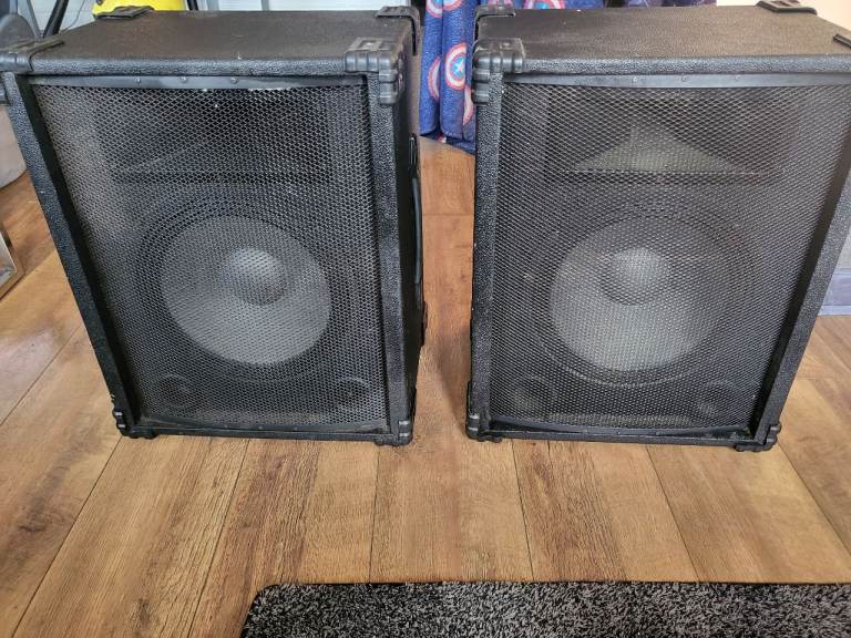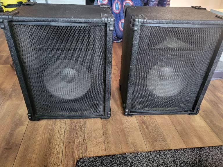 Speakers and amplifier have been used couple of marks. No cables 2 knobs missing but I use the other knobs as they come out