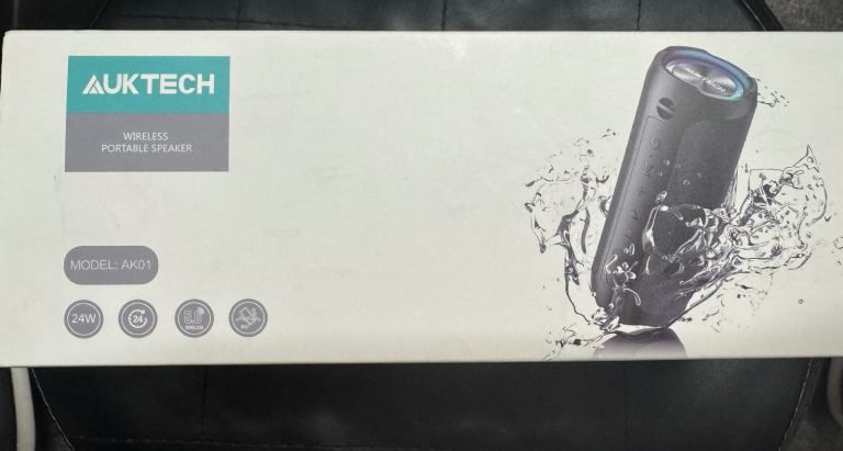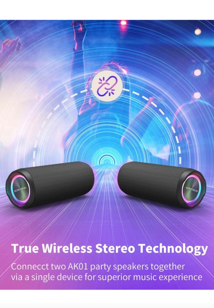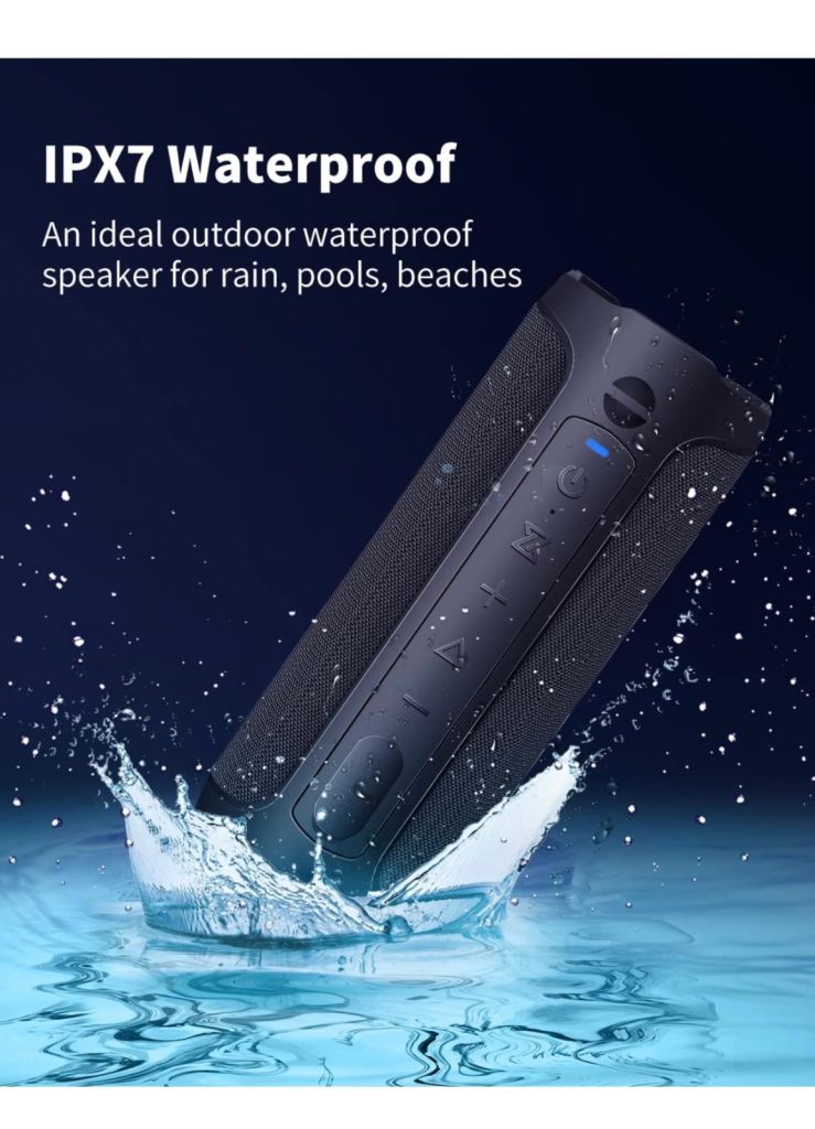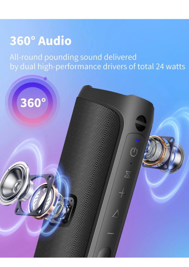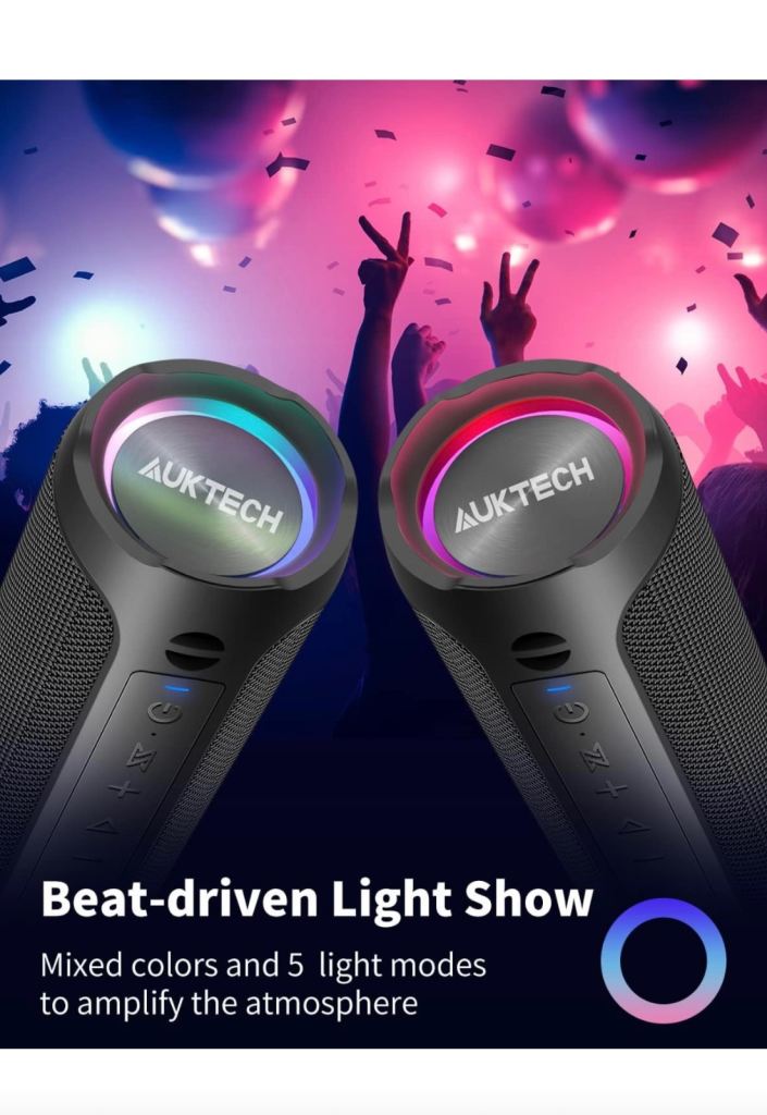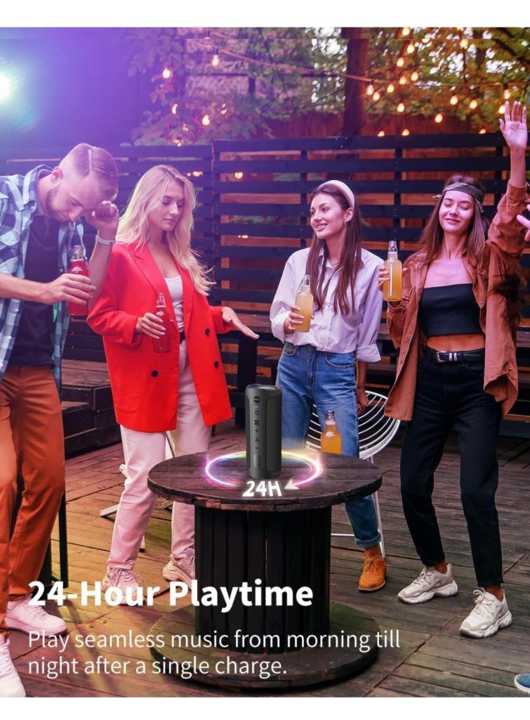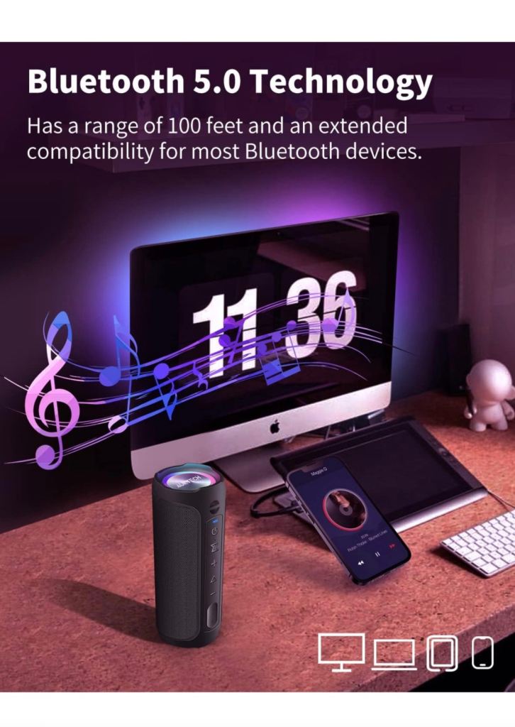 Bluetooth Speaker Portable with Super Bass Speakers Wireless Bluetooth 5.0, Louder Stereo Sound, Optional LED Light, IPX7 Waterproof, Hands-free Microphone, 24H Playtime, Item height 18 centimetres