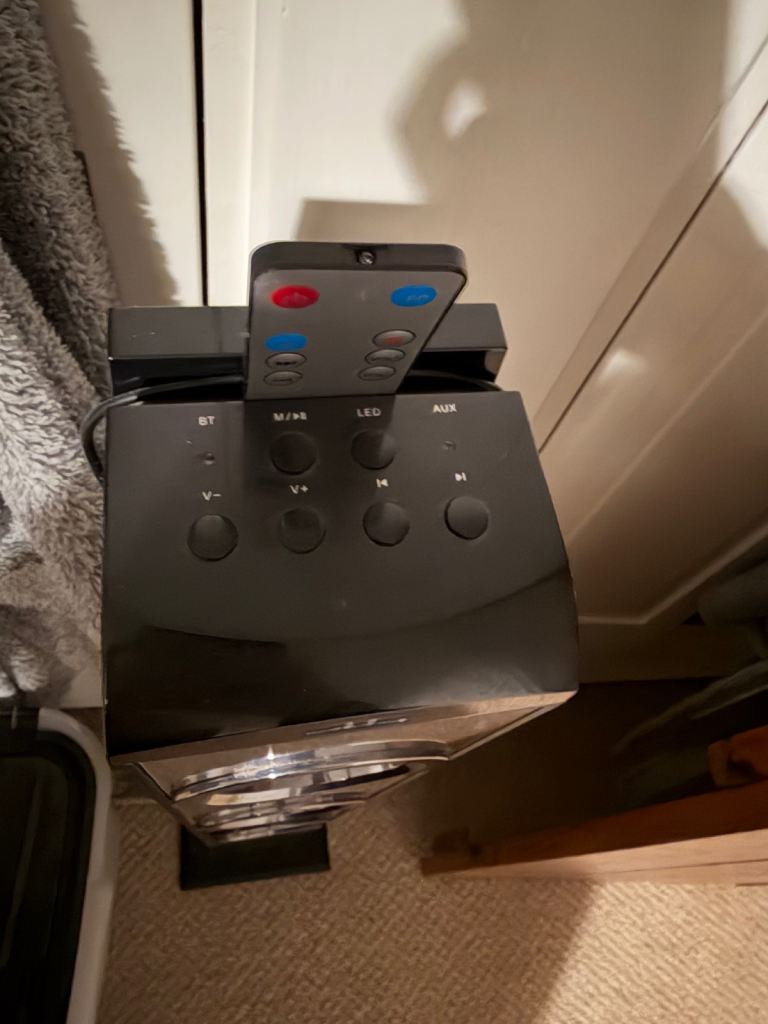 Multicoloured LED Bluetooth speaker can also be used with aux cable (included with it) remote to turn LEDs on and off, turn it up and down also turn it on and off.