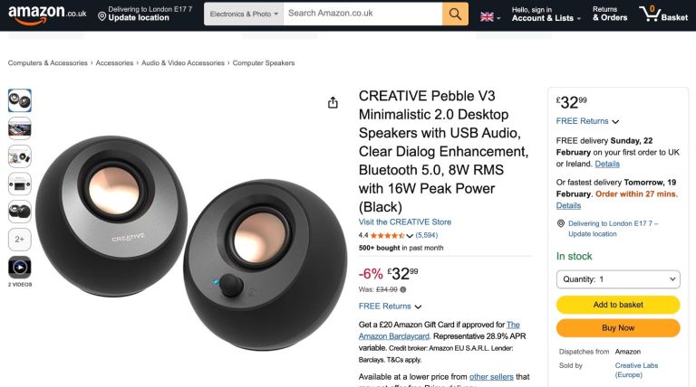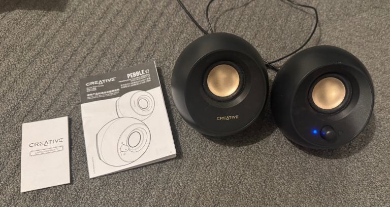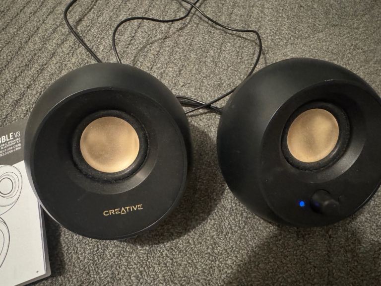 RRP £32. CREATIVE Pebble V3 Minimalistic 2.0 Desktop Speakers with USB Audio, Clear Dialog Enhancement, Bluetooth 5.0, 8W RMS with 16W Peak Power (Black)
