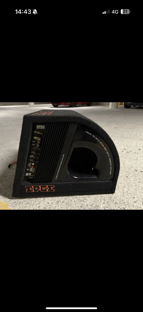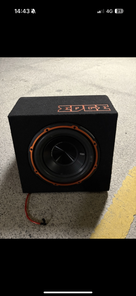 Edge 12 inch sub with built in amplifier, sounds really good upgrade forces sale. Doesn’t come with any leads!