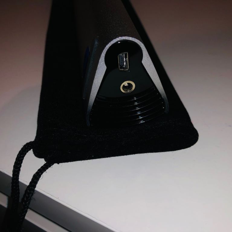Edifier MP250 Mutimedia Speaker with USB cable, audio cable to connect to devices and protective sleeve.