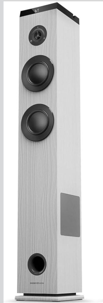 The Energy Sistem Tower 5 G2 65W Sound Tower Bluetooth 5.0 Speaker in white is a high-quality home theater speaker system that delivers powerful audio performance. With Bluetooth 5.0 connectivity, this speaker allows for seamless wireless streaming of music. The system configuration is 2.1 channel, providing a clear and immersive sound experience. The compact design and sleek white colour make it a stylish addition to any home entertainment setup. Additionally, the inclusion of USB and 3.5mm jack audio inputs ensures versatility in connecting various devices for an enhanced audio.