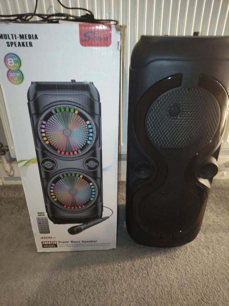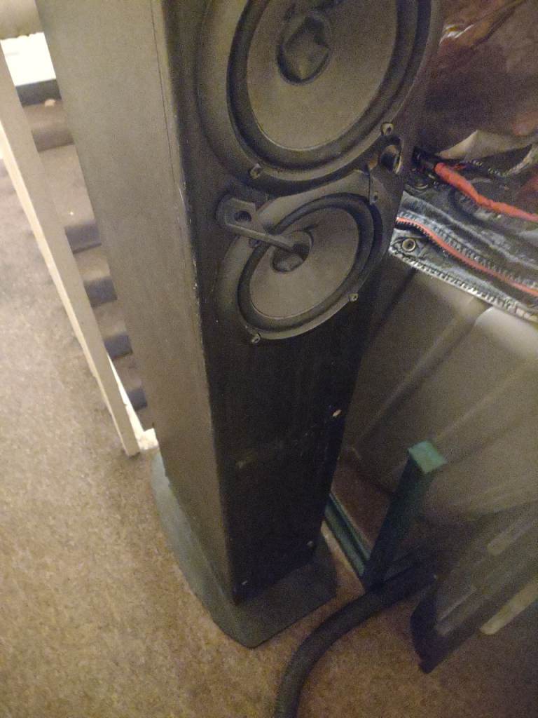 One Tweeter broken hence the price very powerful still work very well must go moving out 40 ovno