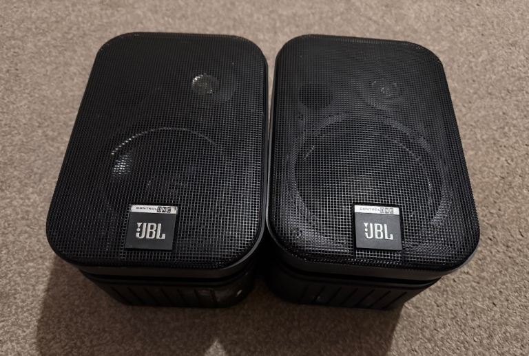 Hi welcoming you all to this amazing useful for multi use JBL Control One Loudspeakers Compact Speakers in very good condition may have tiny paint or stains from work will try to clean before post though thanks