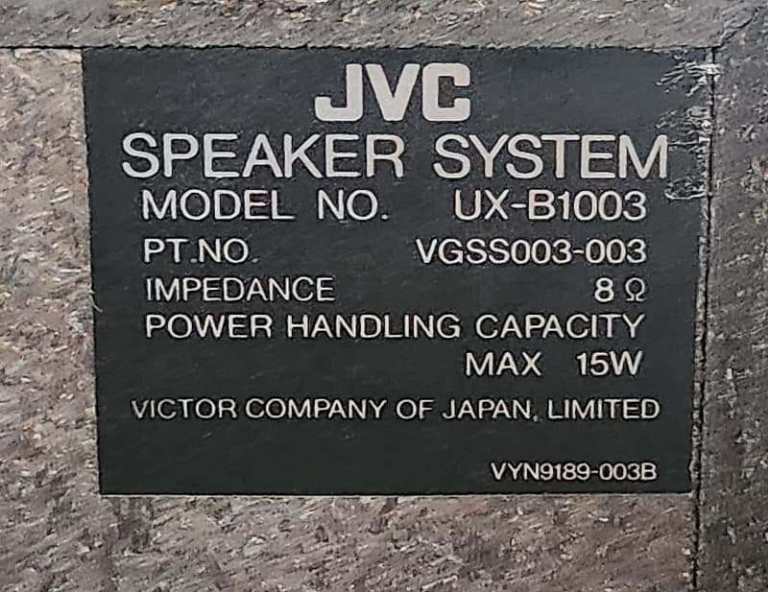 JVC speakers, model UX-B1003, 8ohm, 15W.