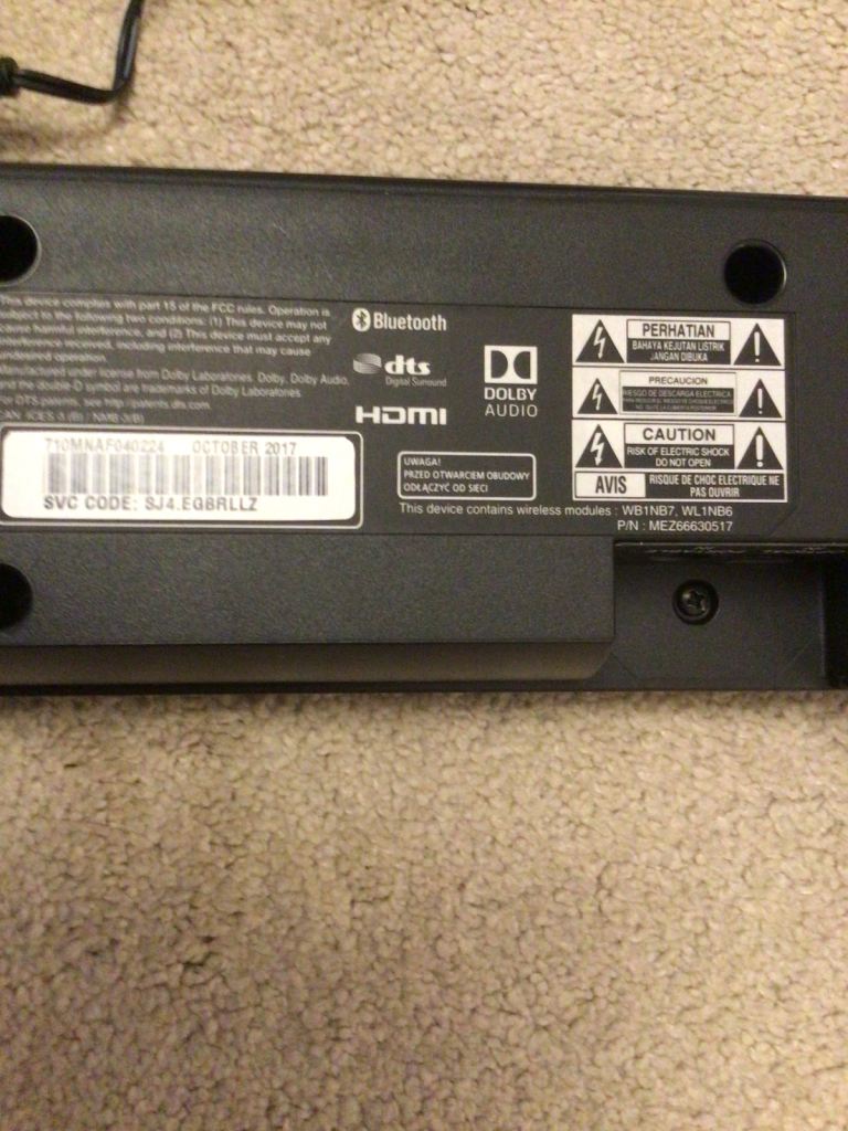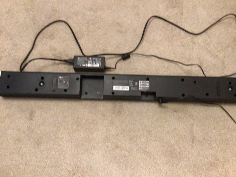 LG soundbar, subwoofer and remote control