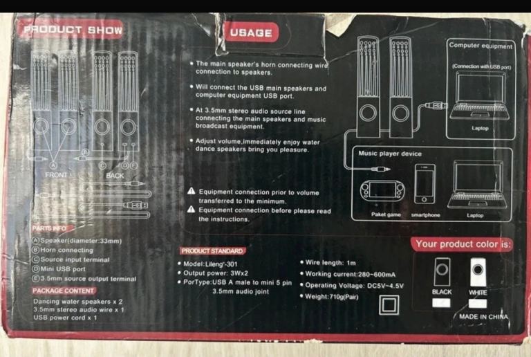 Lifeng 301 Dancing Water Speakers – USB Powered, Brand New