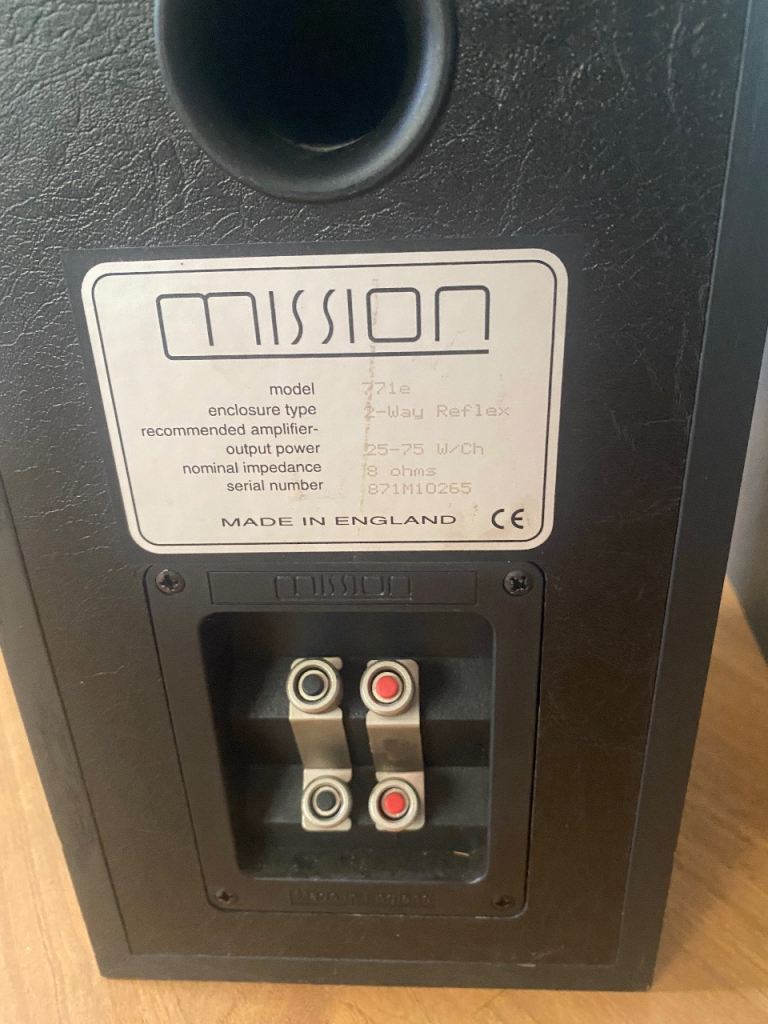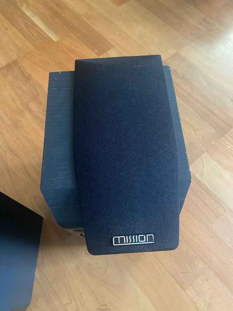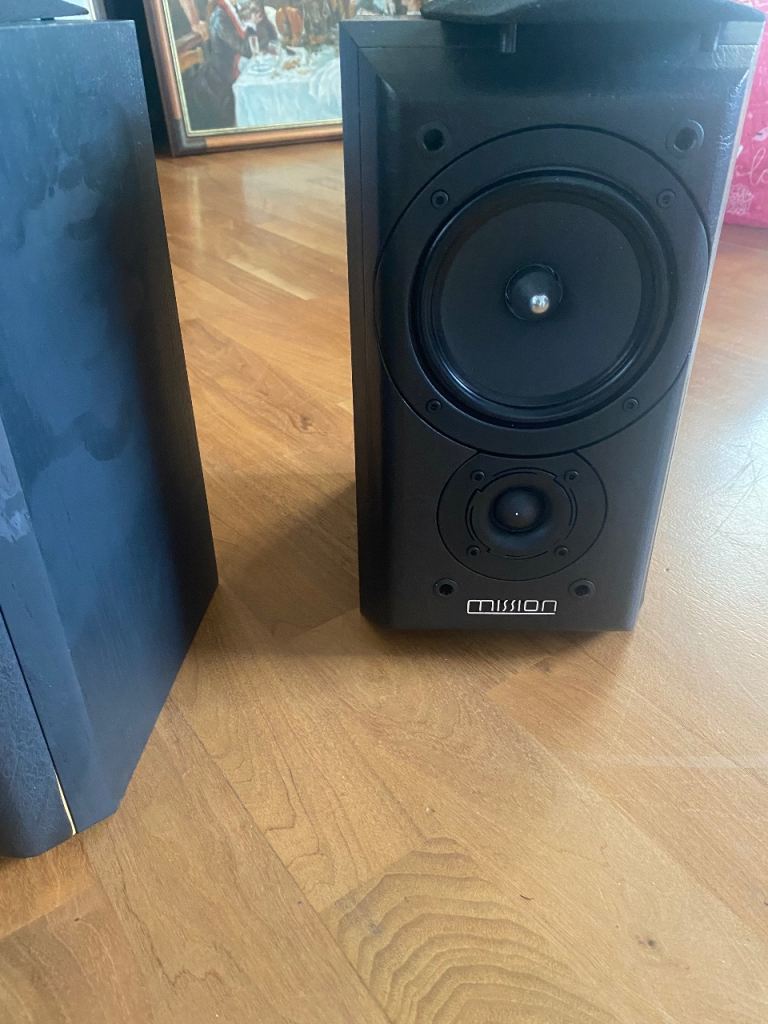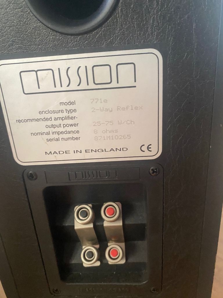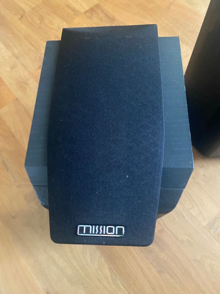 A pair of used mission book shelf speakers, model 771a in black ash. Buyer collect