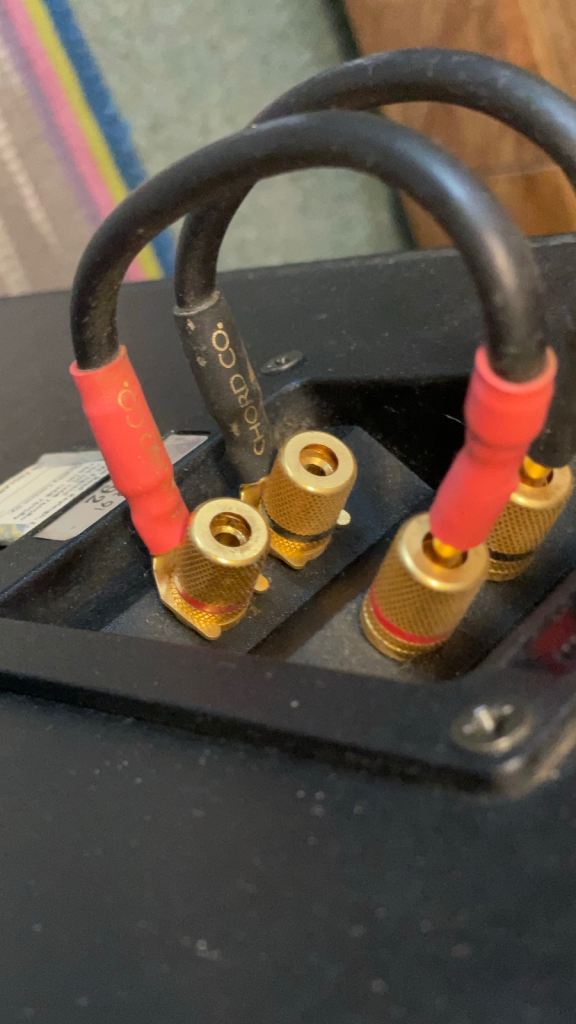 They come without floor spikes but these can be picked up on Amazon. They do come with some excellent Chord Co. Binding post jumper cables (can be see in the rear view photos) useful if you are not bi-wiring.