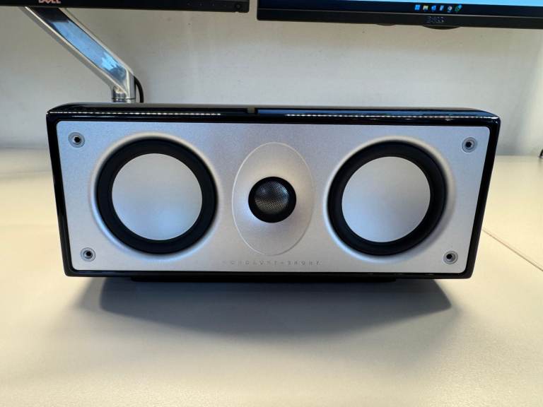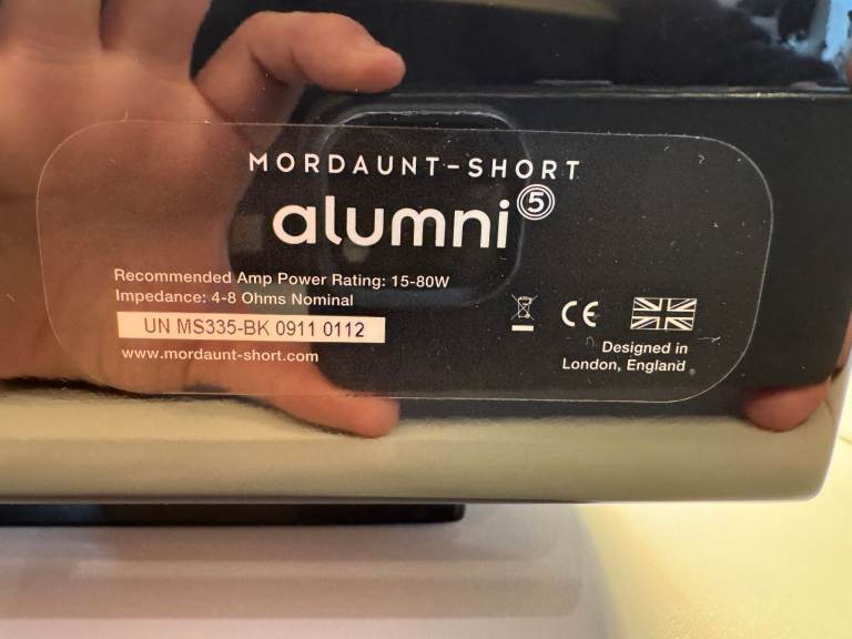 For sale I have a Mordaunt-Short Alumni 5 HiFi centre speaker – 15 – 80W in a black gloss finish with stand and cover (small pull in cover fabric, not noticeable when on – see photos).
