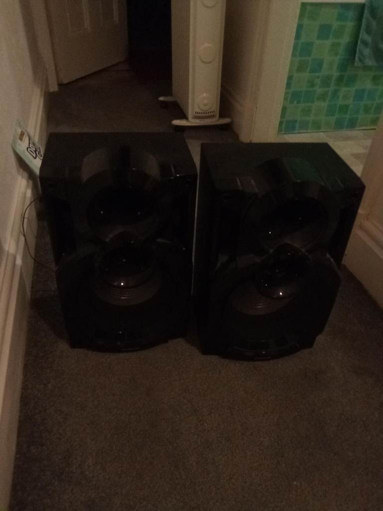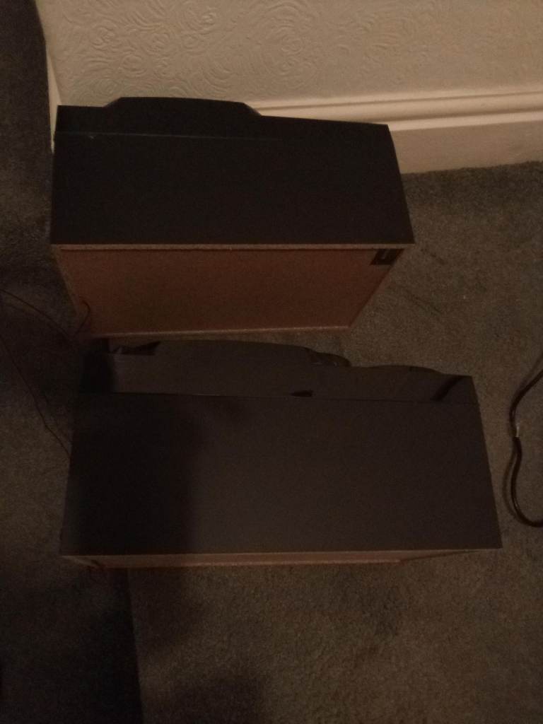 Measuring approx 16 inches tall and approx 12 inches wide, these speakers are in good condition with a wooden body and strong plastic fronts. Collect from Ulverston.