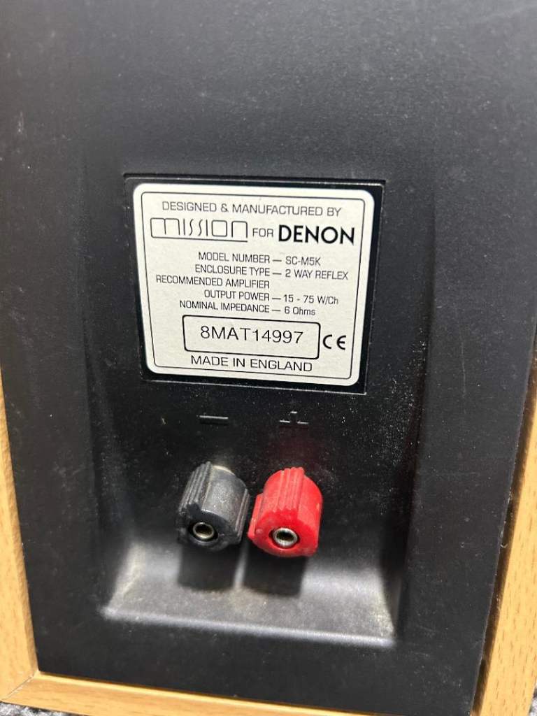 SOLD. PENDING COLLECTION. Denon / Mission SC-M5K speakers. Good working order, no dents in tweeters (or anywhere else!). Please see my other listings also.