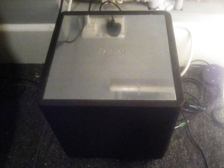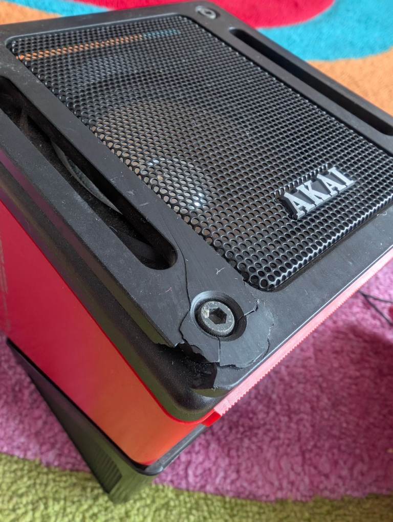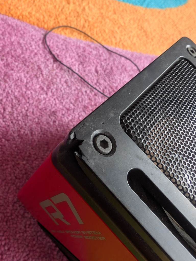 Both speakers are in good vintage cosmetic condition with vibrant red paint. Please note: One speaker has a small crack in the black plastic casing near the corner screw (see photos). This is purely cosmetic and does not affect the structure of the speaker housing.