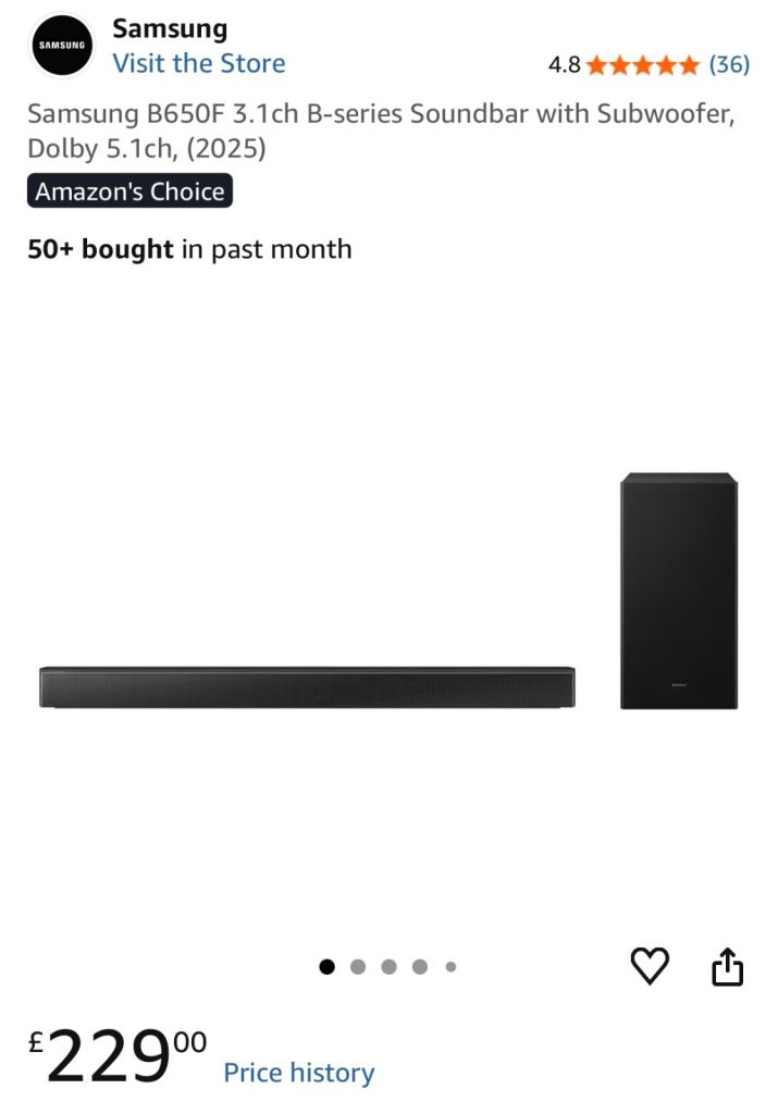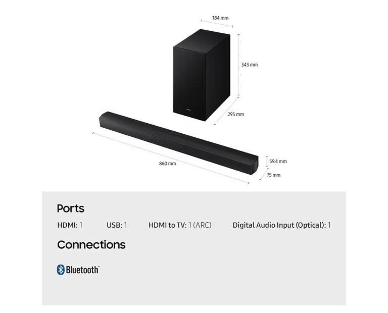 Samsung B650F 3.1ch B-series Soundbar with Subwoofer, Dolby 5.1ch, (2025)