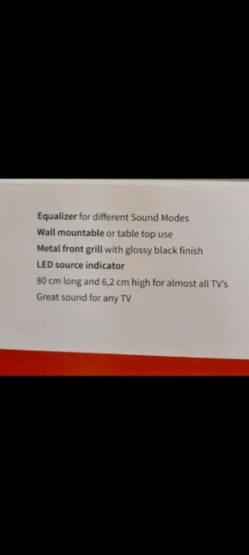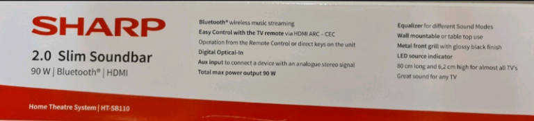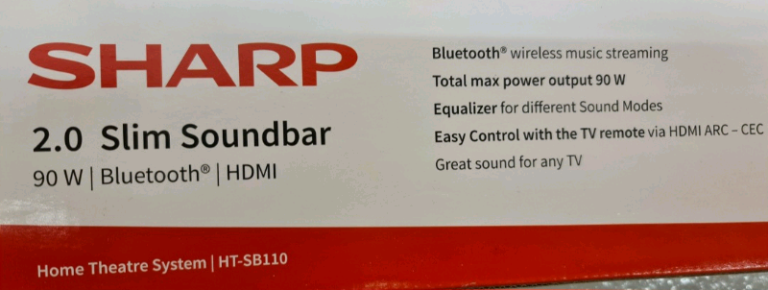 Sharp 2.0 soundbar with remote control. Easy to connect via HDMI, or OPTIC connections, very good sound, also remote control. Surplace to requirements. £40. Cash only please, on hand over. Thanks in advance.