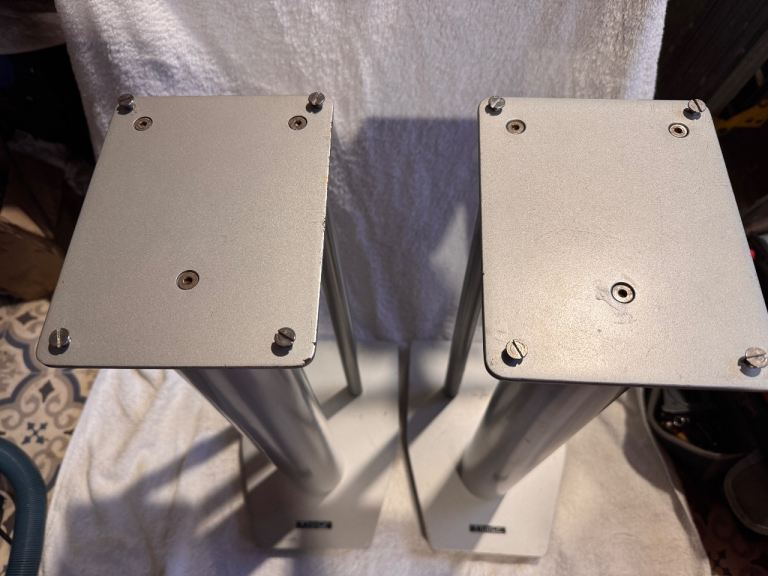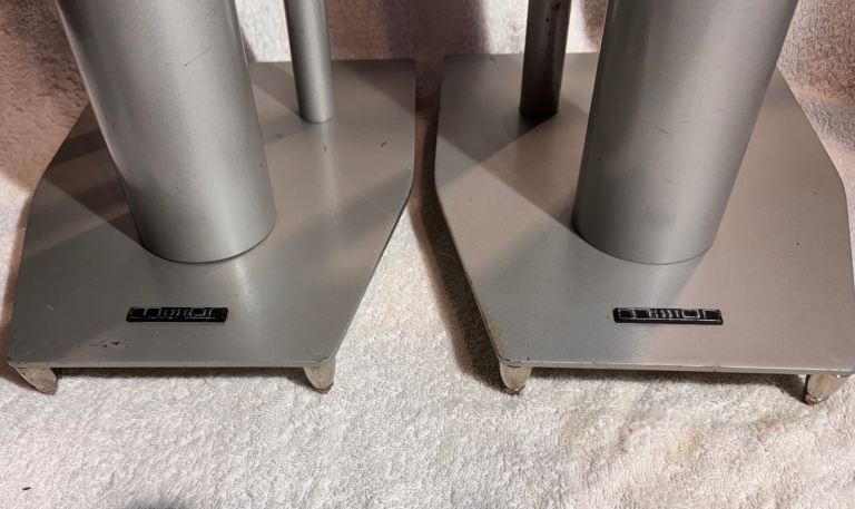Pair of silver speaker stands 600mm tall by Mission.