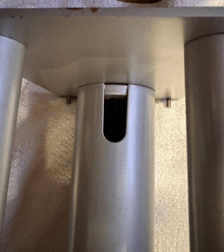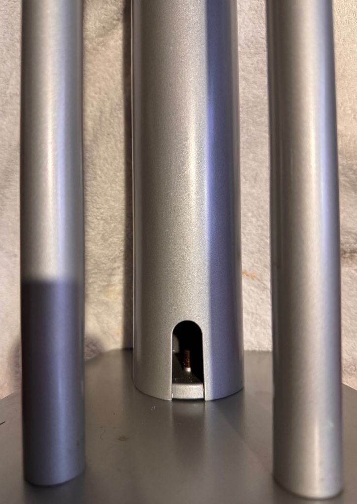 Main large tube has apertures top and bottom for routing cables.