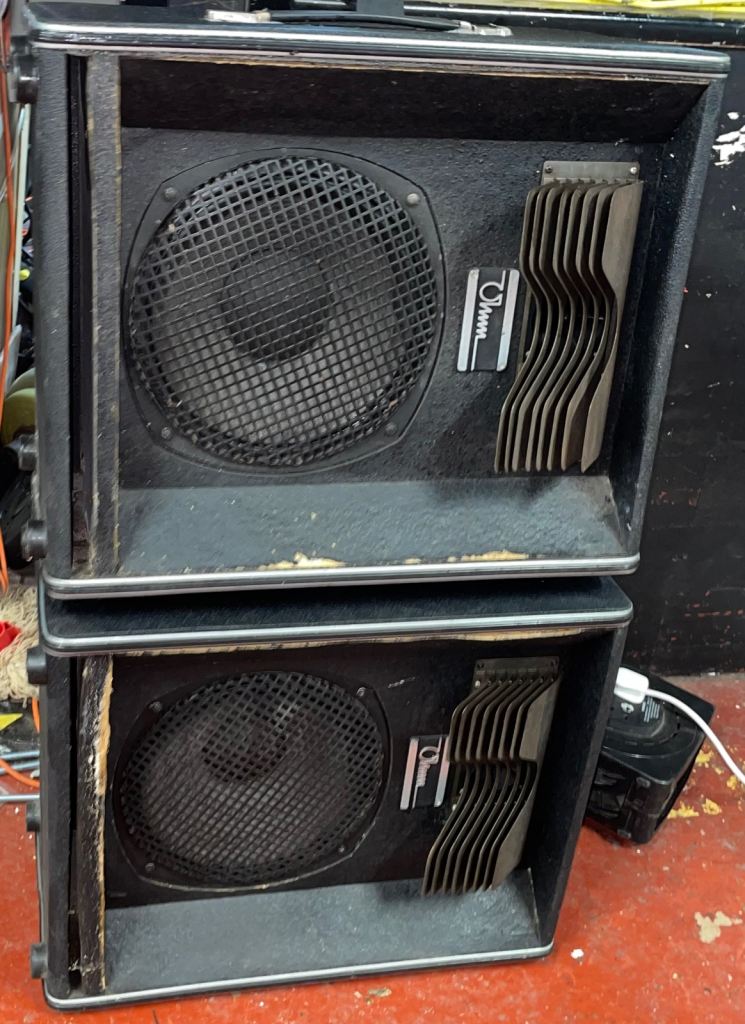 SPEAKERS: Ohm professional audio equipment: Pair of speakers 200W each.