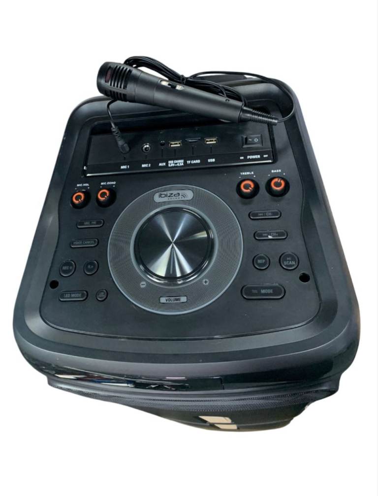 Large and powerful speaker with eye-catching light effects on the front and illuminated top panel controls. It creates a party atmosphere during your karaoke evenings but is also discreet for everyday use in your living room.