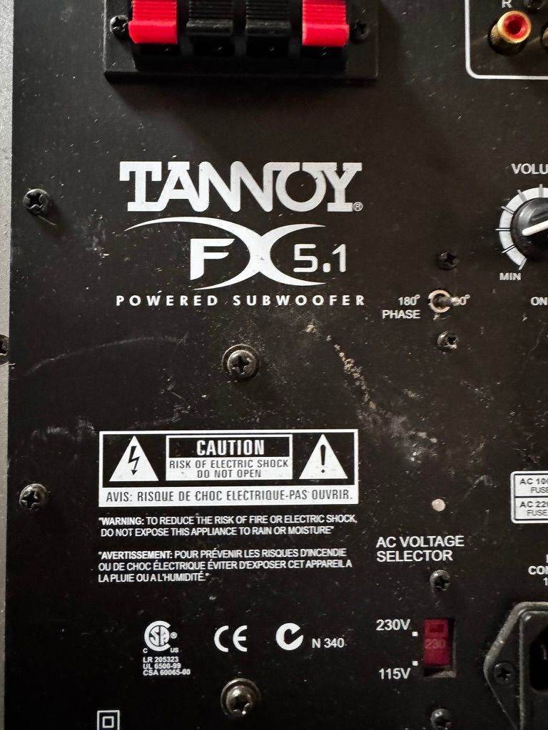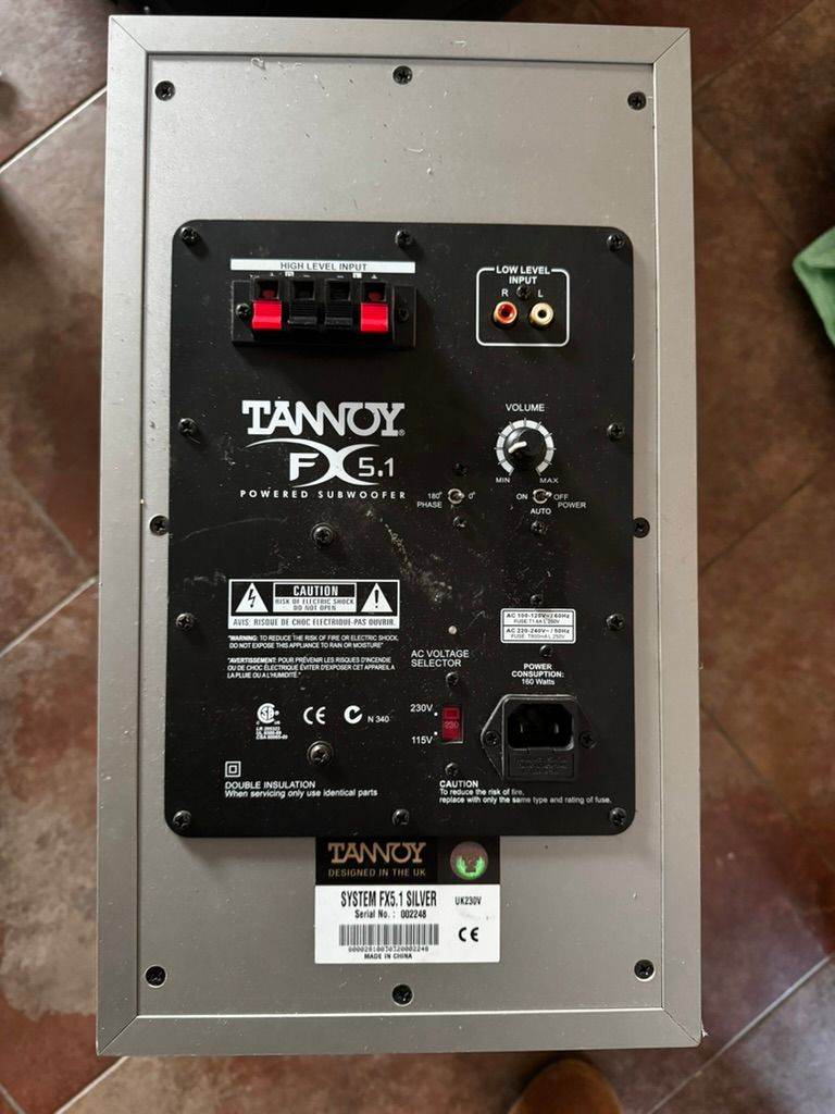 Tannoy FX 5.1 Powered Subwoofer Silver UNTESTED