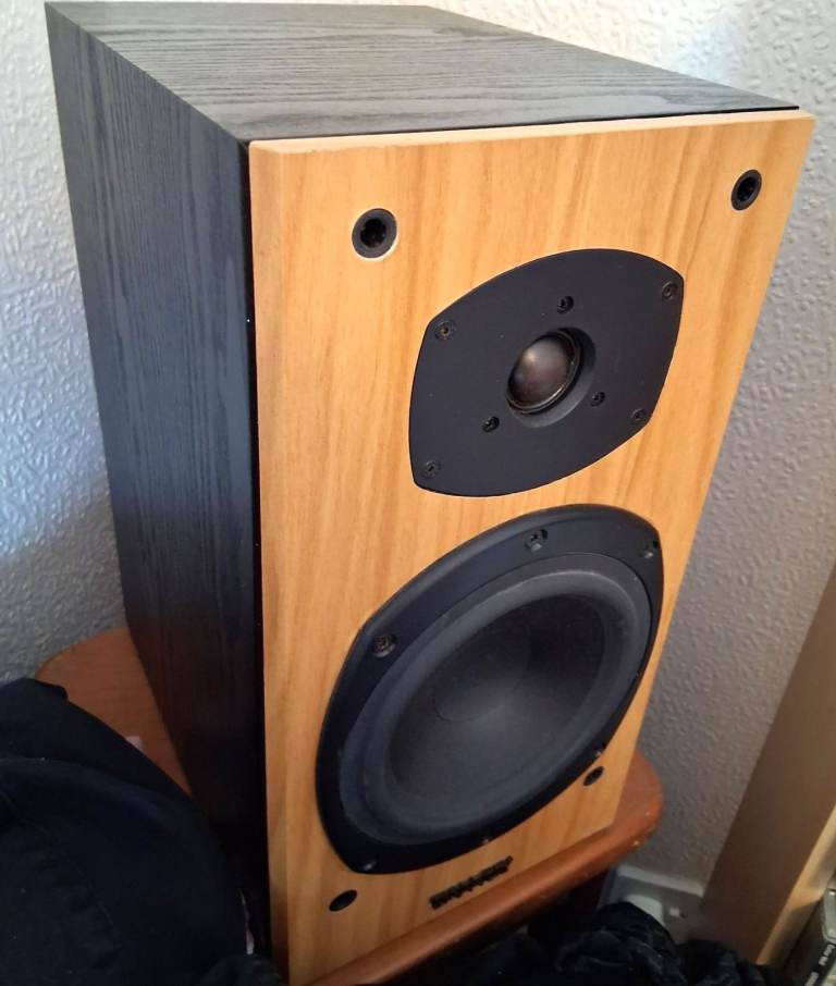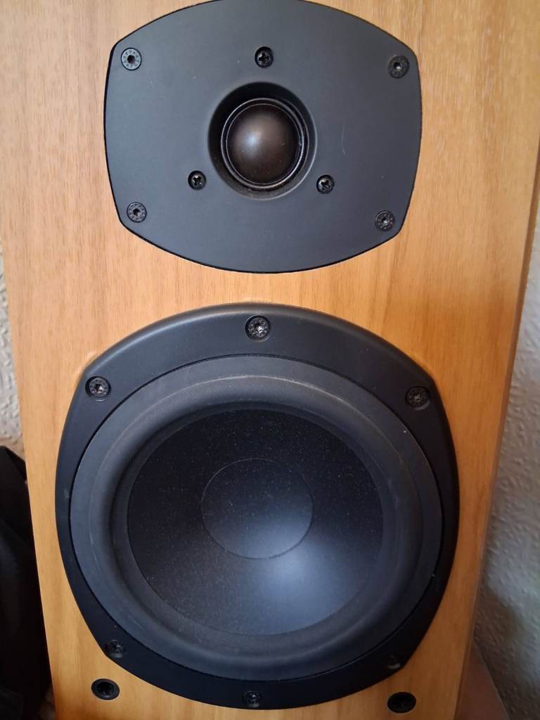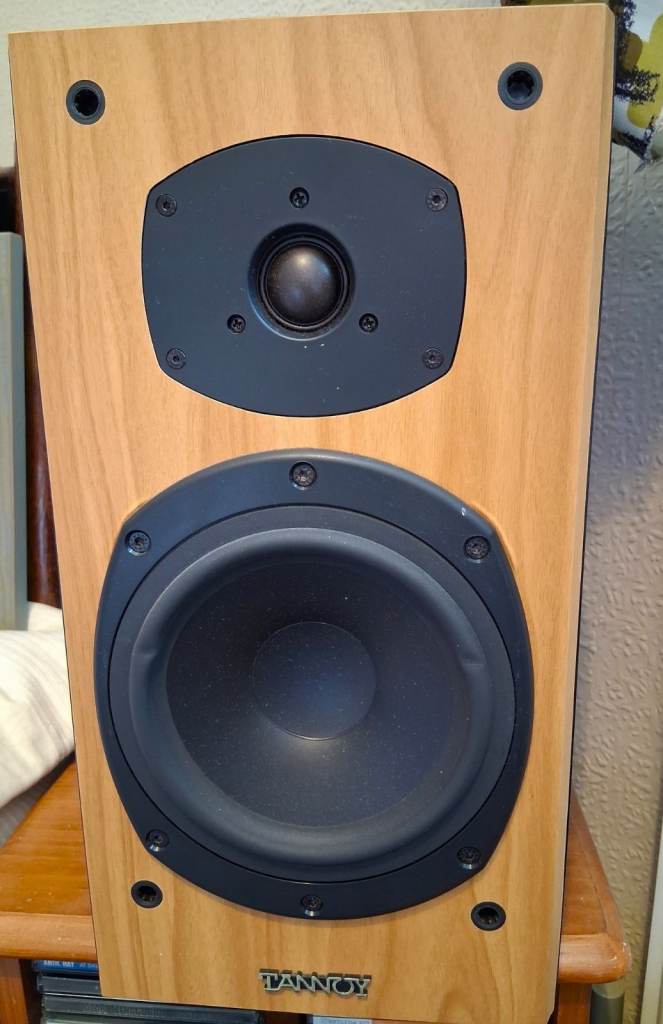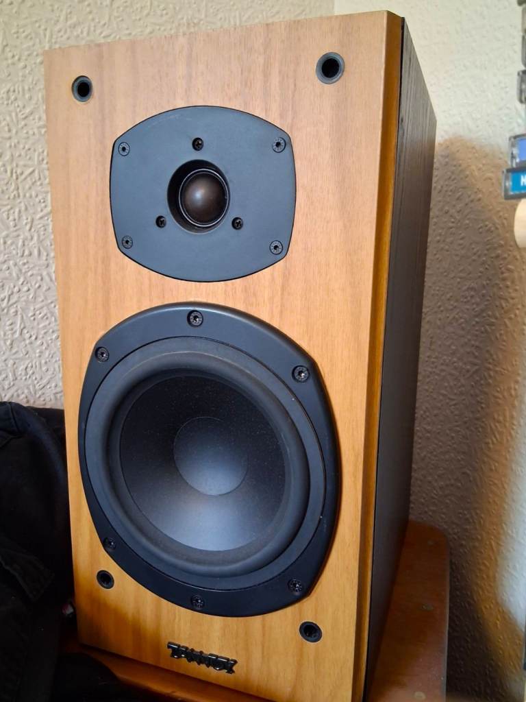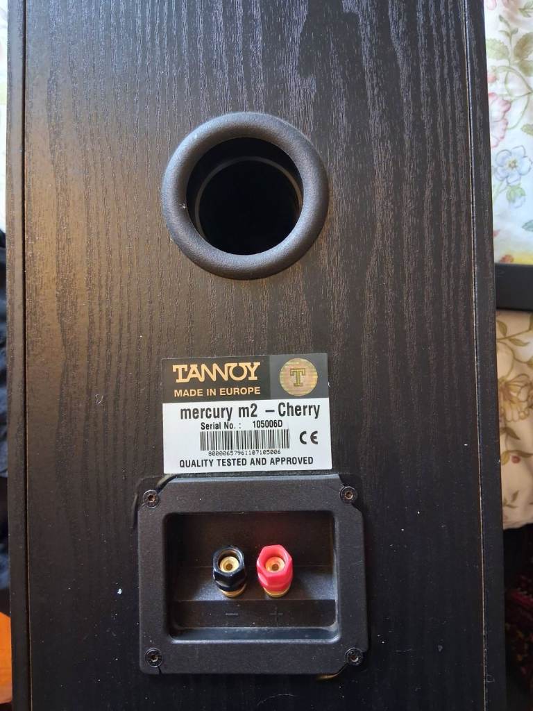 High-quality Tannoy Mercury M2 speakers in cherry wood finish front, contrasting with the black ash cabinet. Great sounding speakers in VGC, medium sized bookshelf speakers, dimensions are 380mm 200 x 270 HxWxD. £75 collected from RG12.