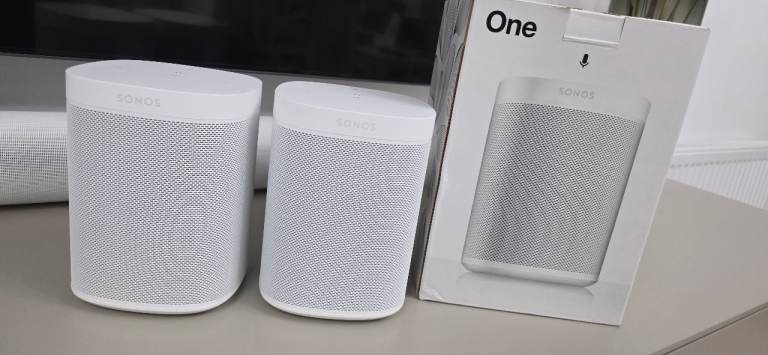 Two wireless speakers in perfect condition no scratches or tares. Excellent sound quality .