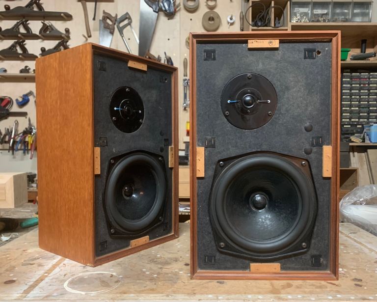 The crossovers have had all their capacitors replaced with upgraded film capacitors and the improvement in sound is amazing; so much clearer, more transparent and detailed. These will put many modern designs to shame.