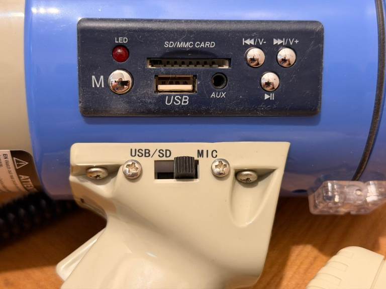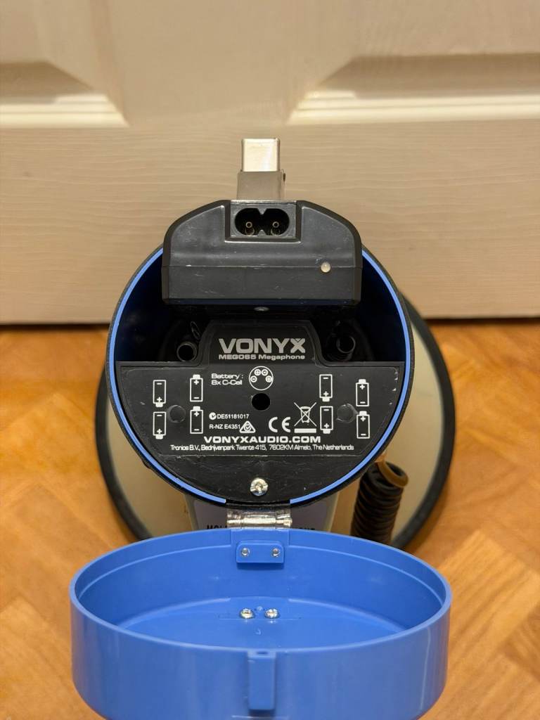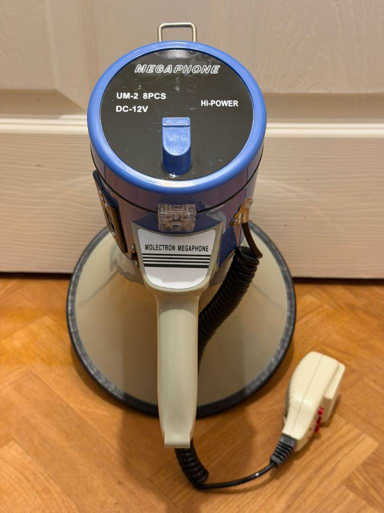 Used in great condition, fully working with rechargeable battery and charging cable. Perfect for announcements, events, sports, school activities, demonstrations, or just for fun.