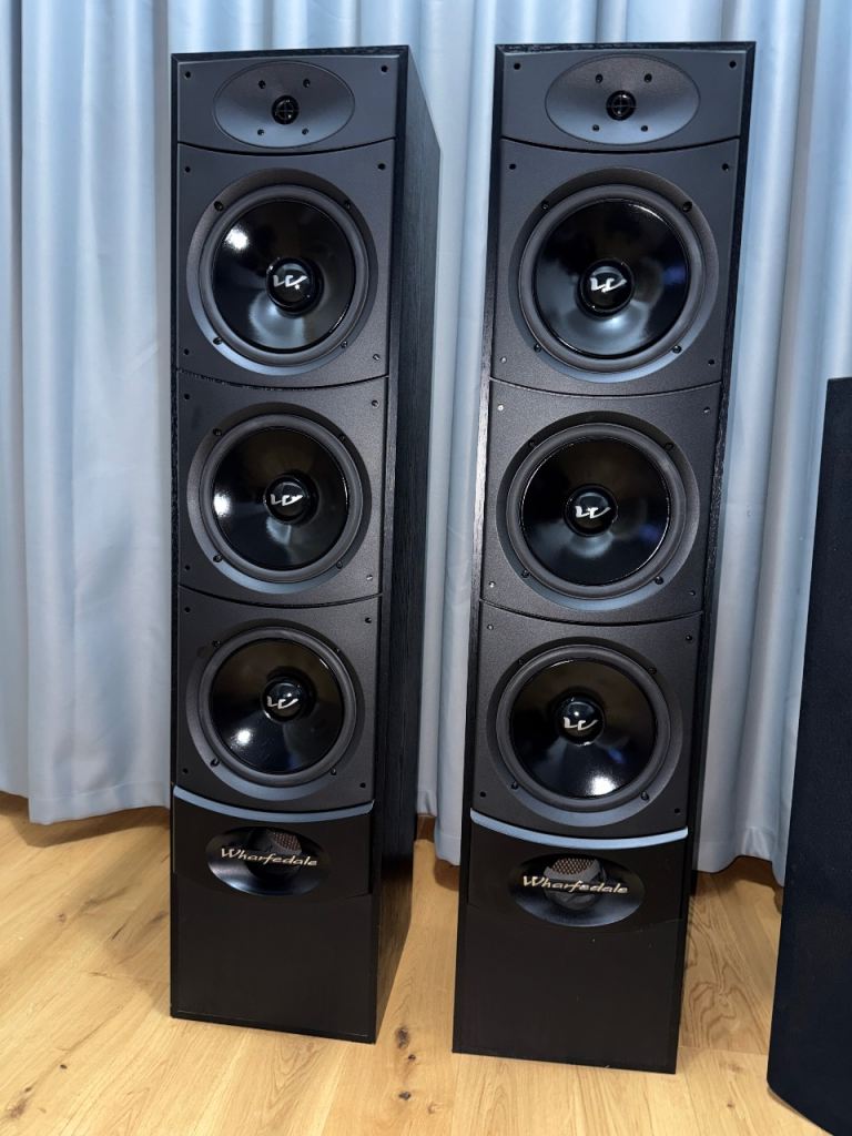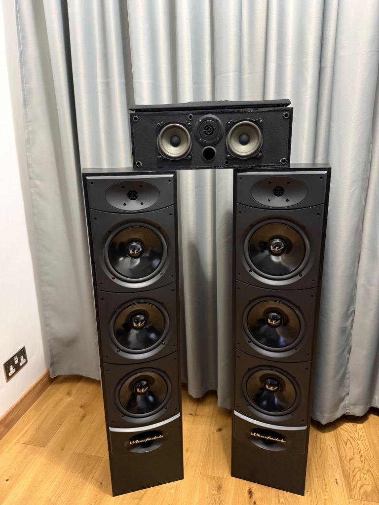 A magnificent pair of Warfedale speakers with a central speaker for movie and music lovers in great condition. They are very good looking speakers,and they are running perfectly.Together with the central speaker they can make a great home cinema experience.Due to the size and power they can handle ,they need a proper source (amplifier or an AV receiver) .Due to the size and weight they have to be collected.