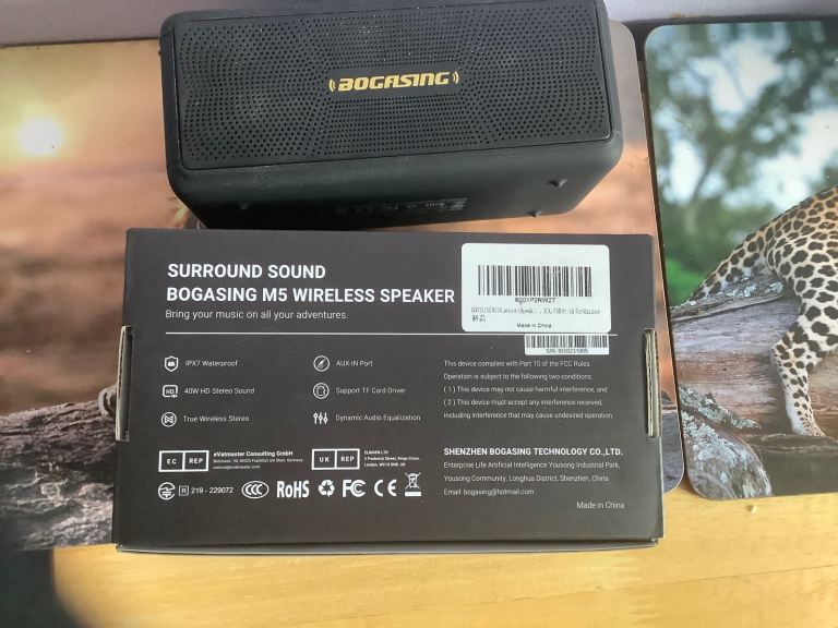 Bogasing Wireless Speaker,40 watt accepts to card,waterproof,aux port ,charging cable ,complete with box manual.