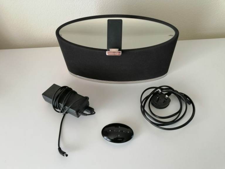 The Zeppelin Mini is a compact speaker designed for iPod and iPhone, offering high-quality sound and intelligent design in a space-saving format. It features advanced technology such as Digital Signal Processing and a rotating docking arm for ease of use. With its sleek appearance and impressive specifications, it is ideal as the sound is great. It also has an 3.5mm aux. port on the rear so you can attach a music device via a cable or a simple bluetooth receiver so you can use it with Spotify, radio or link it to Amazon Alexa.